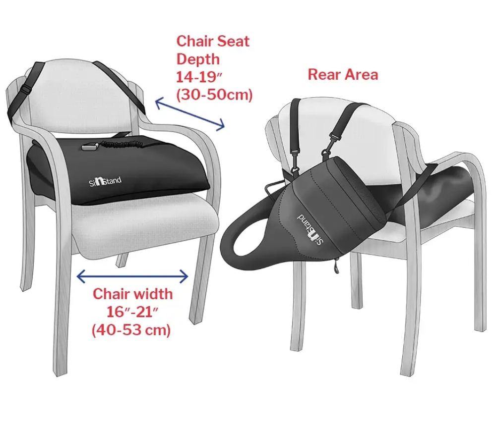 ApplePayInflatable and portable lift seat. Has air pump and battery pack attached. Lifts by inflating 4, 2" high cushions, one at a time, for a total lift of a little over 8". Can be used on kitchen chairs, wheelchairs, airplane seats, and other types of seats.