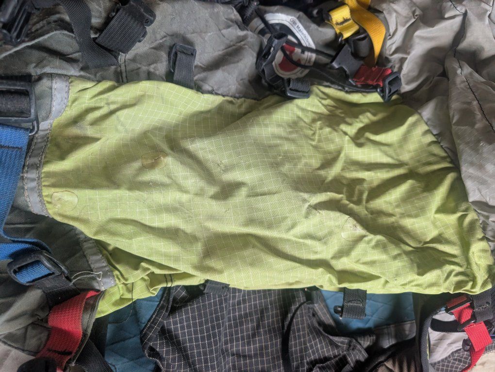 Cilogear 30:30 - super popular as a climbing pack. plenty of space in a narrow frame. Cilo 30 - some smaller holes in the sides don't affect functionality too much Cilo 60 - well worn, still works, definitely seen some days Mammut ski/climbing pack: also well worn, still functional Blue Ice Kume 30 - great backcountry ski pack. Awesome shape. Osprey Mutant 38L - beat to heck but you could always use it and get it replaced by Osprey. Great climbing pack. REI Flash 18 - perfectly functional
