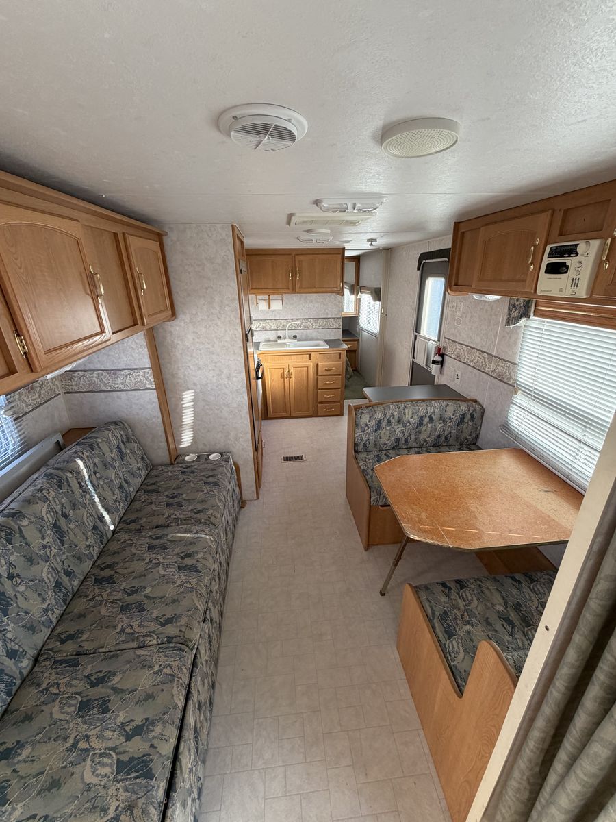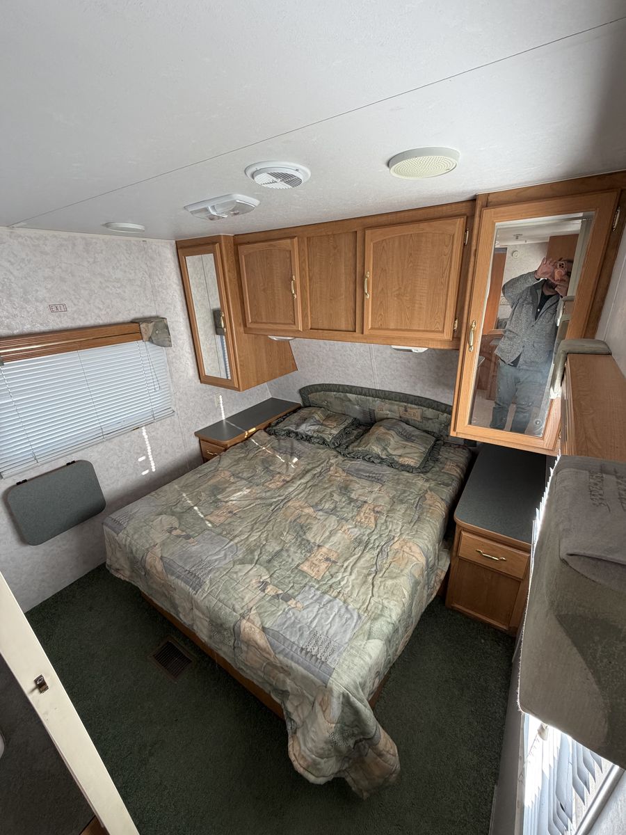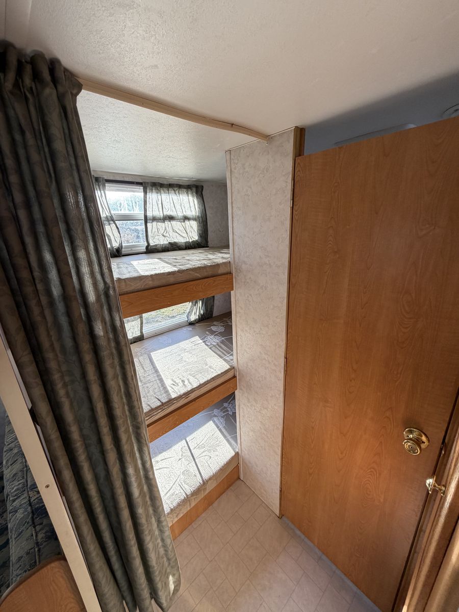 2002 Layton 27’ sleeps 9 with front queen private bedroom and rear triple bunkhouse has A/C awning stove oven and microwave every thing works no leaks or damage good tires clean title in hand