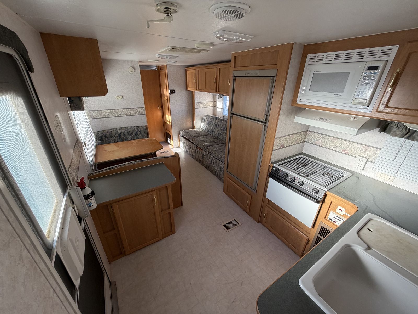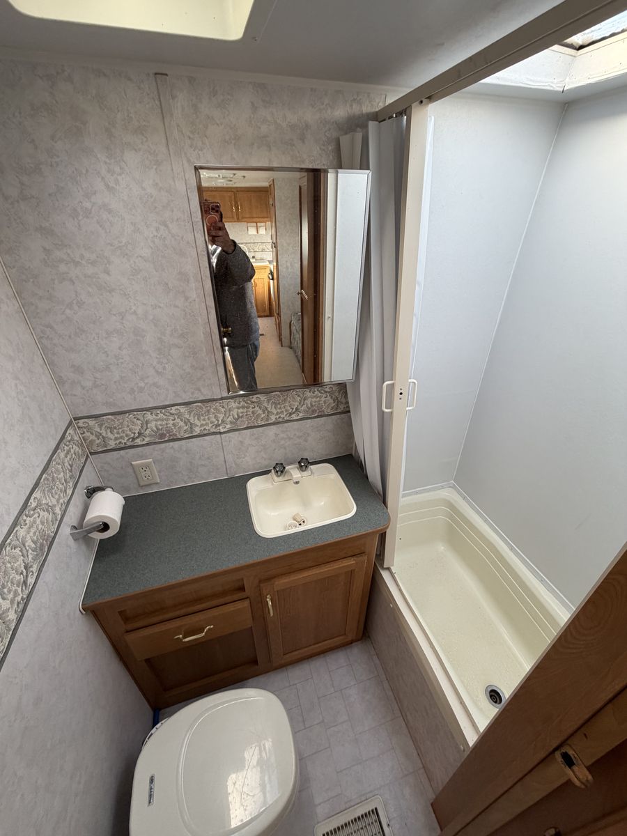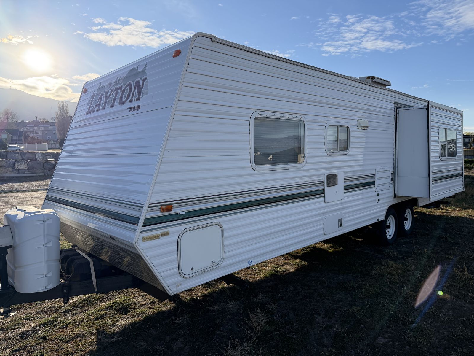 2002 Layton 27’ sleeps 9 with front queen private bedroom and rear triple bunkhouse has A/C awning stove oven and microwave every thing works no leaks or damage good tires clean title in hand