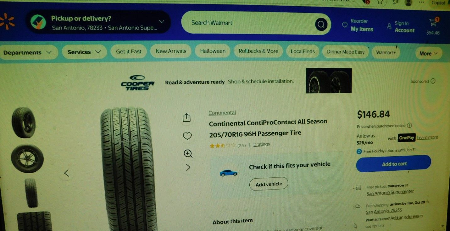 Set of 4 205 70R 16 Continental Conti Pro Contact 96H all season good shape like new $160 $40 per tire Walmart $146 per tire (4) for less than price of 1must see