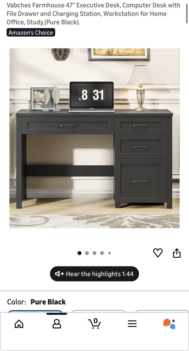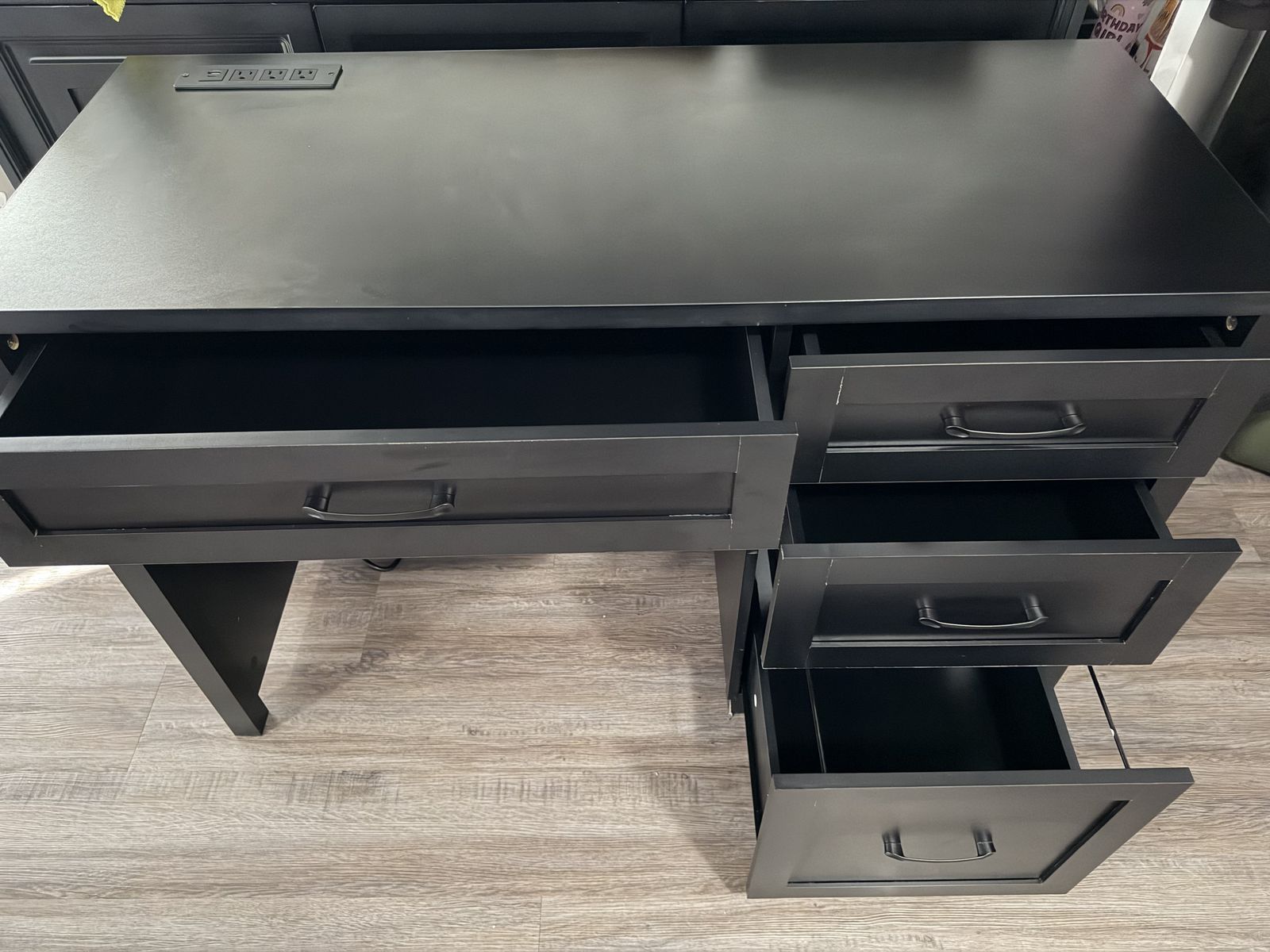 ApplePayLike new black desk with 4 drawers and charging station. Used about 4 months, no longer need. $120 OBO. Brand new on Amazon for $189. Dimensions in photos.