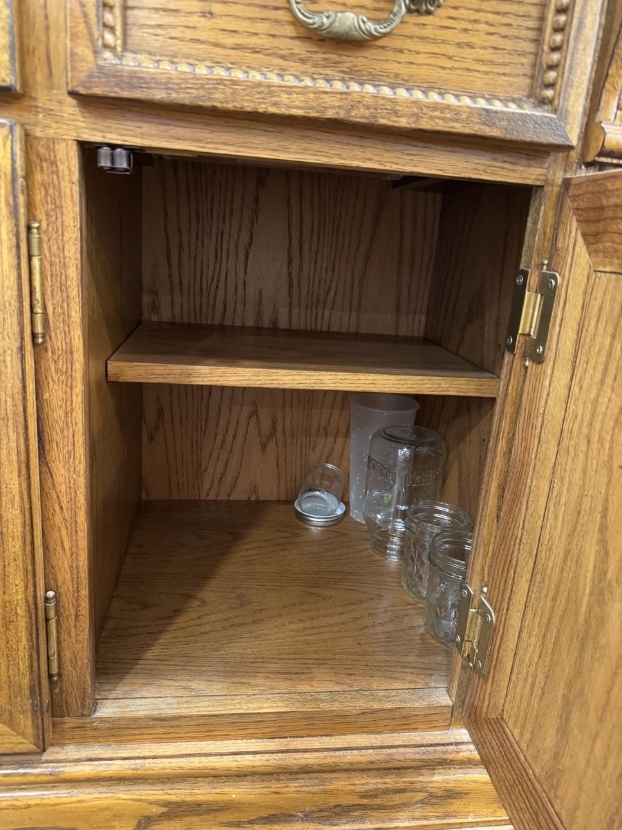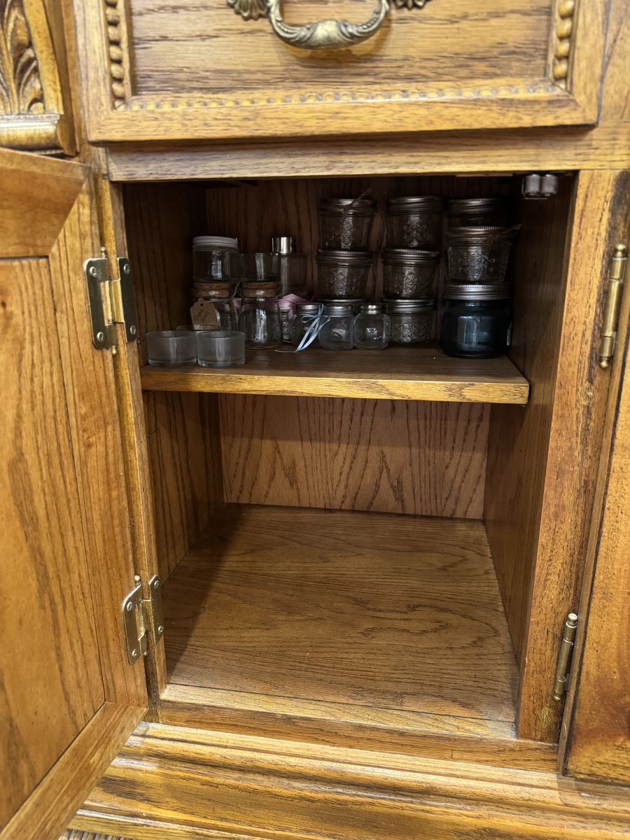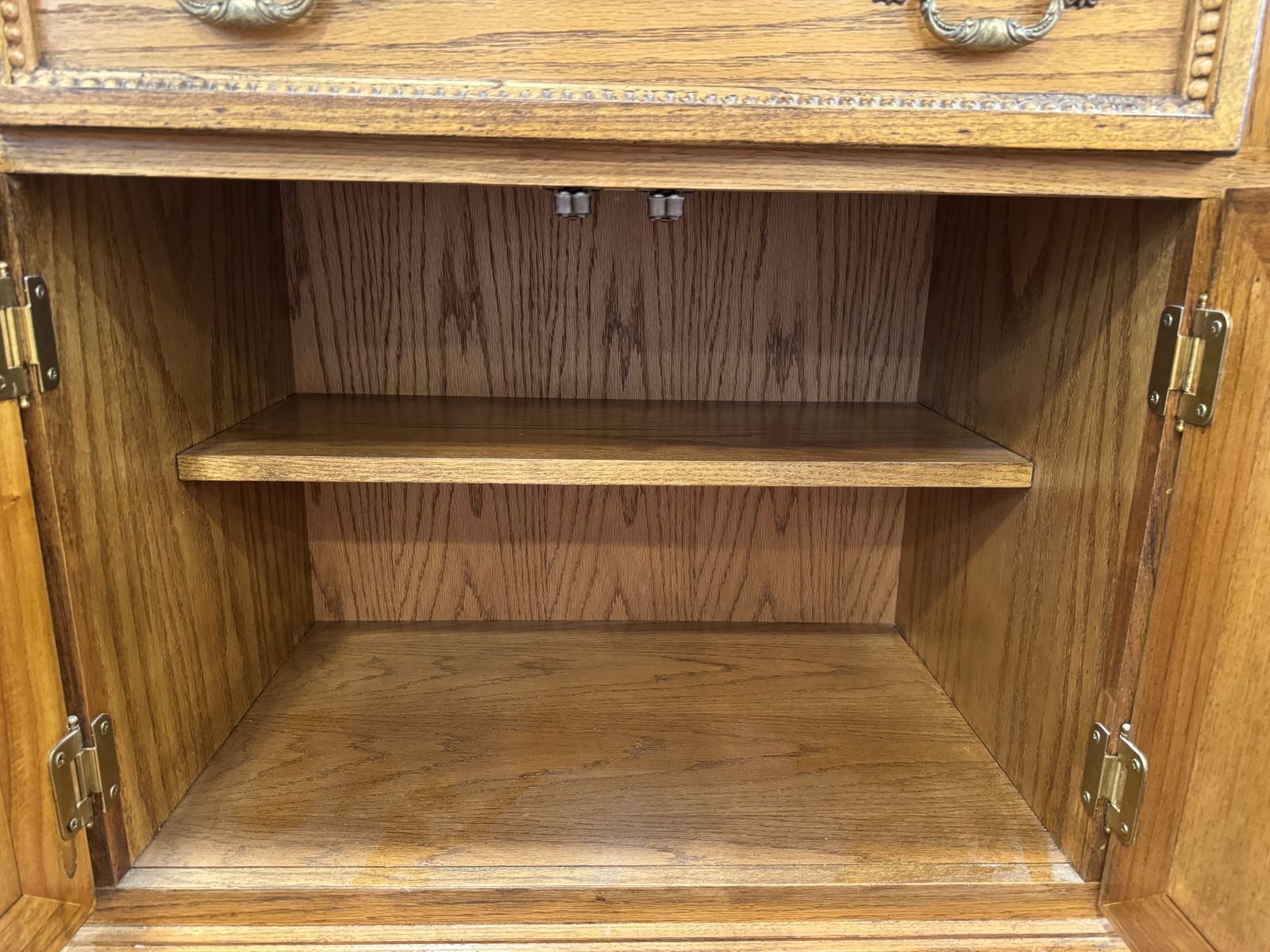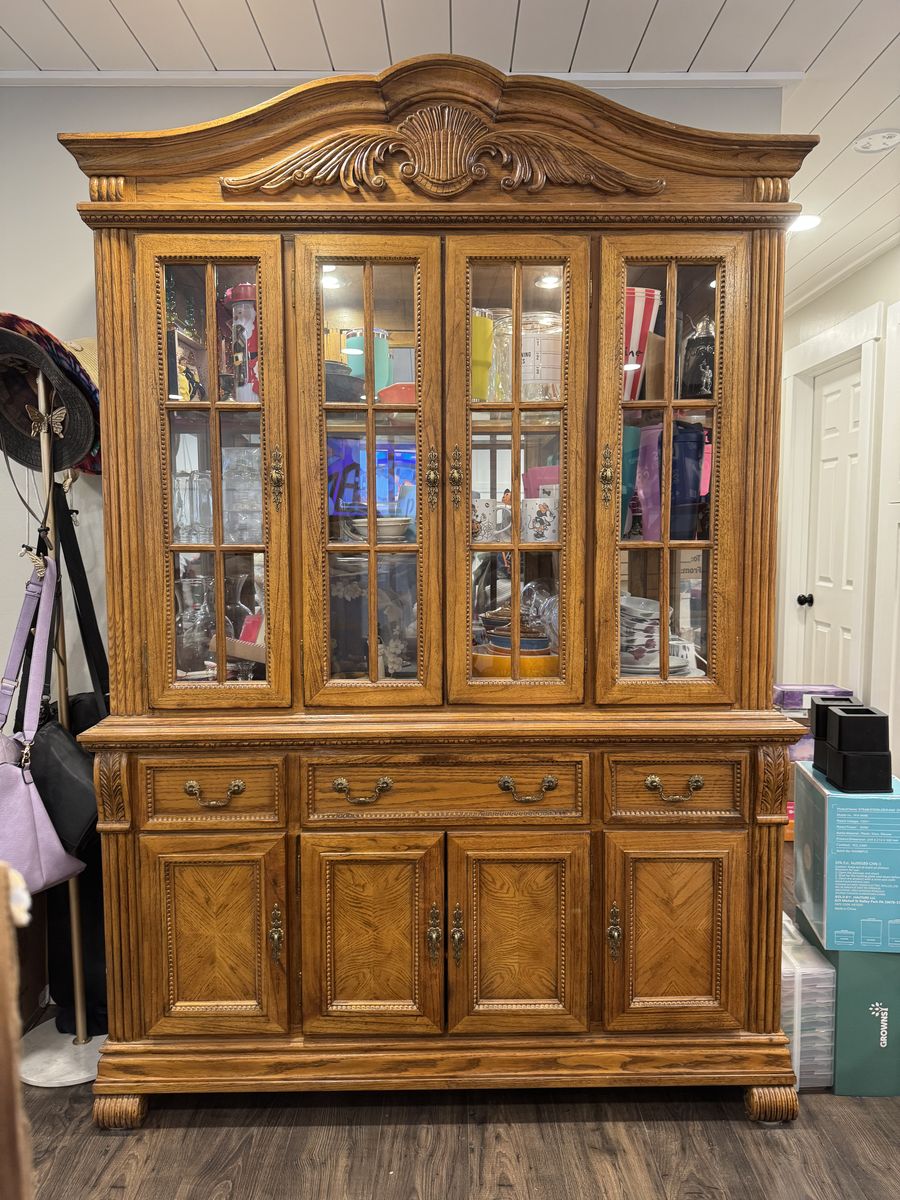 PayPalBeautiful detailed hutch with lined drawers and a light inside to show off your dishes or trinkets. It’s a little dusty. (Dishes inside not included.) Measurements: 87.5 inches tall 60 inches width 17.5 inches depth