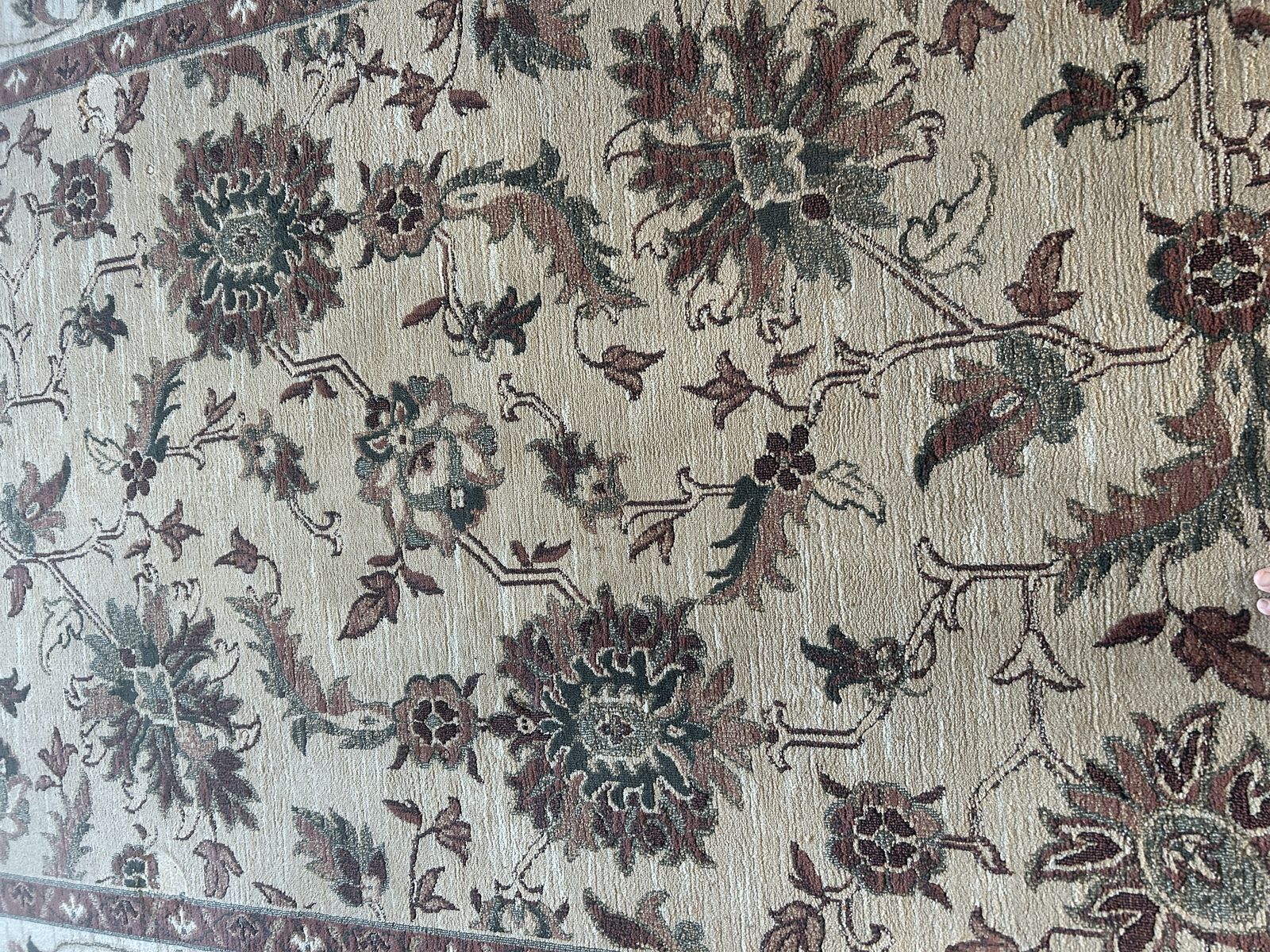 Includes premium rug pad (adds cushion + prevents slipping) Very Clean and well cared for No stains or damage Neutral traditional pattern works in living room, bedroom, or office.