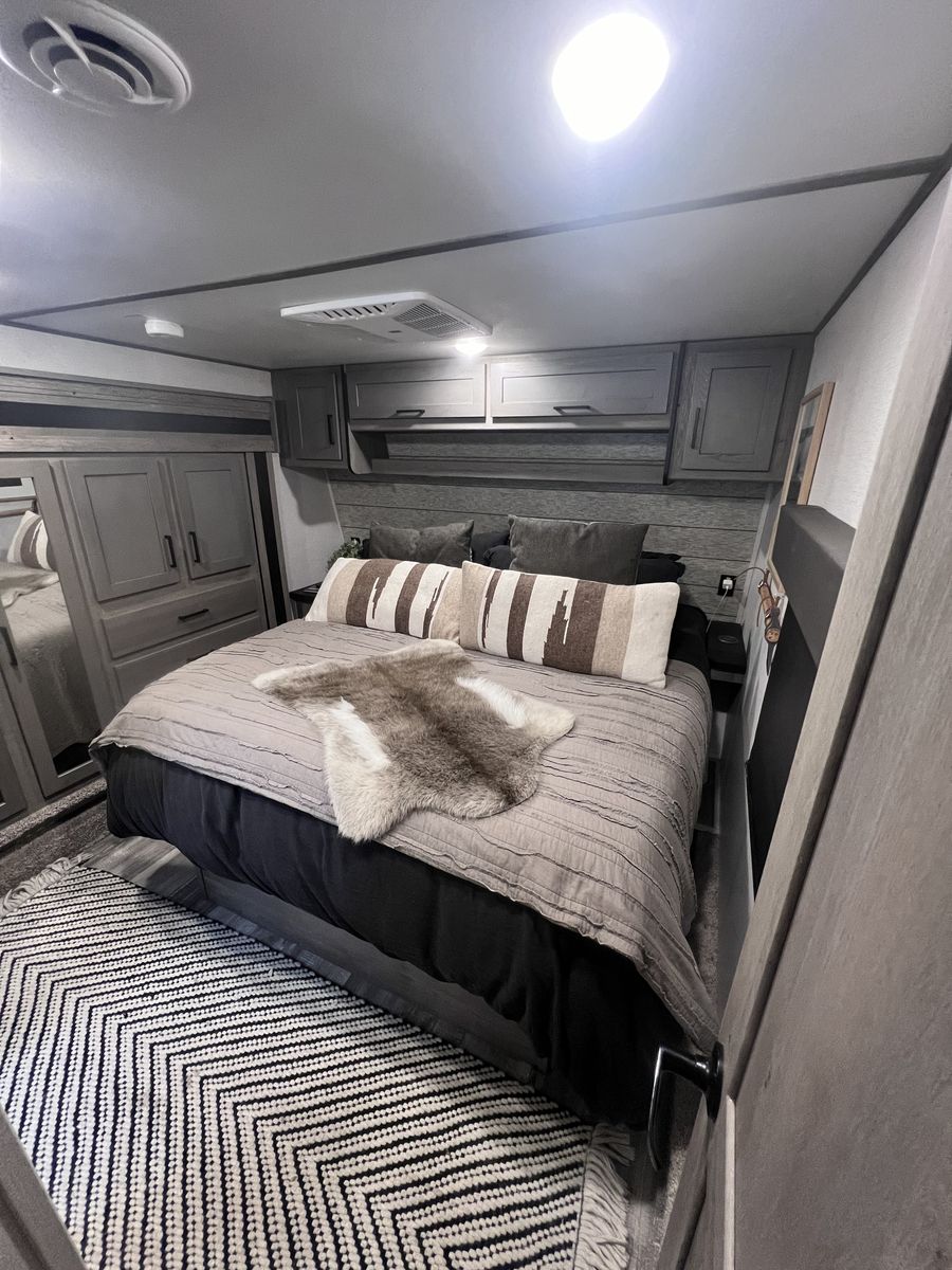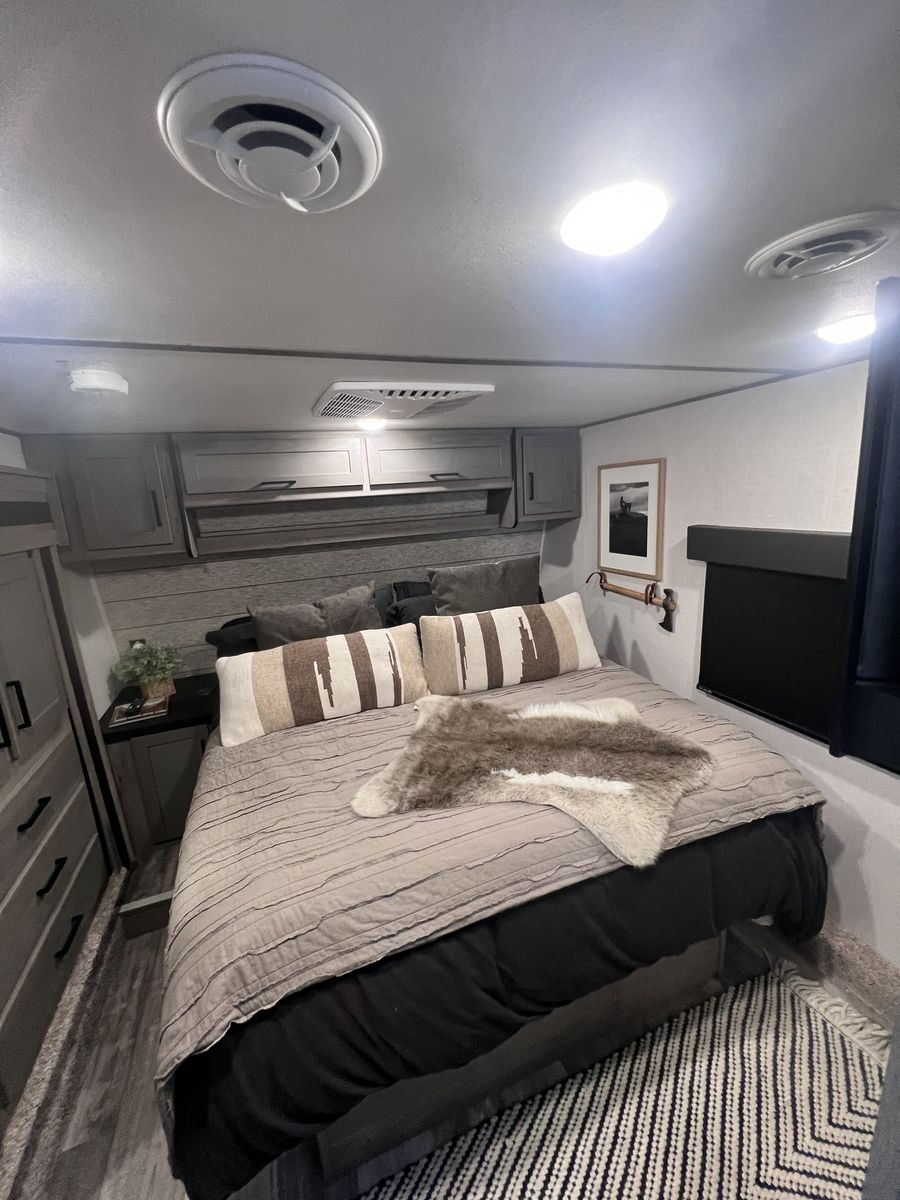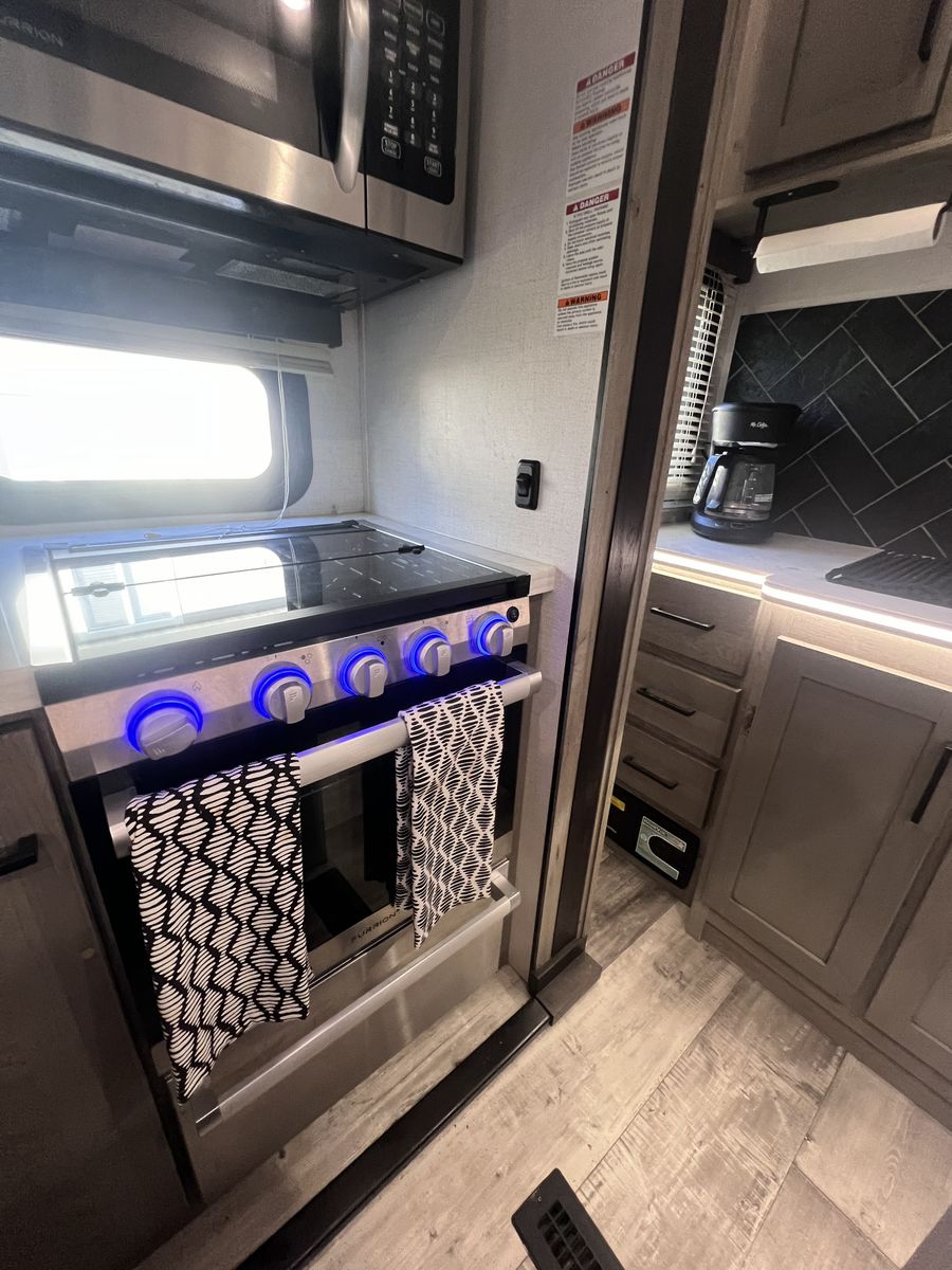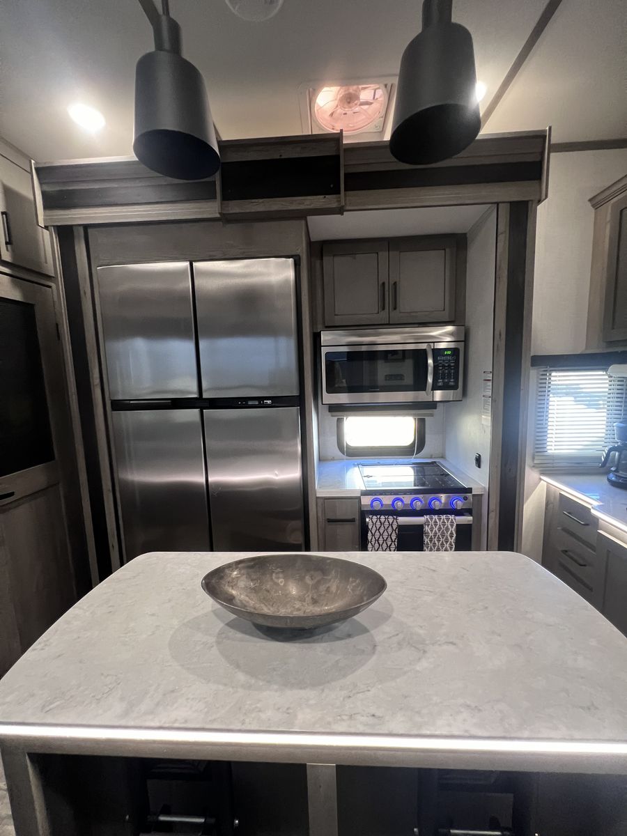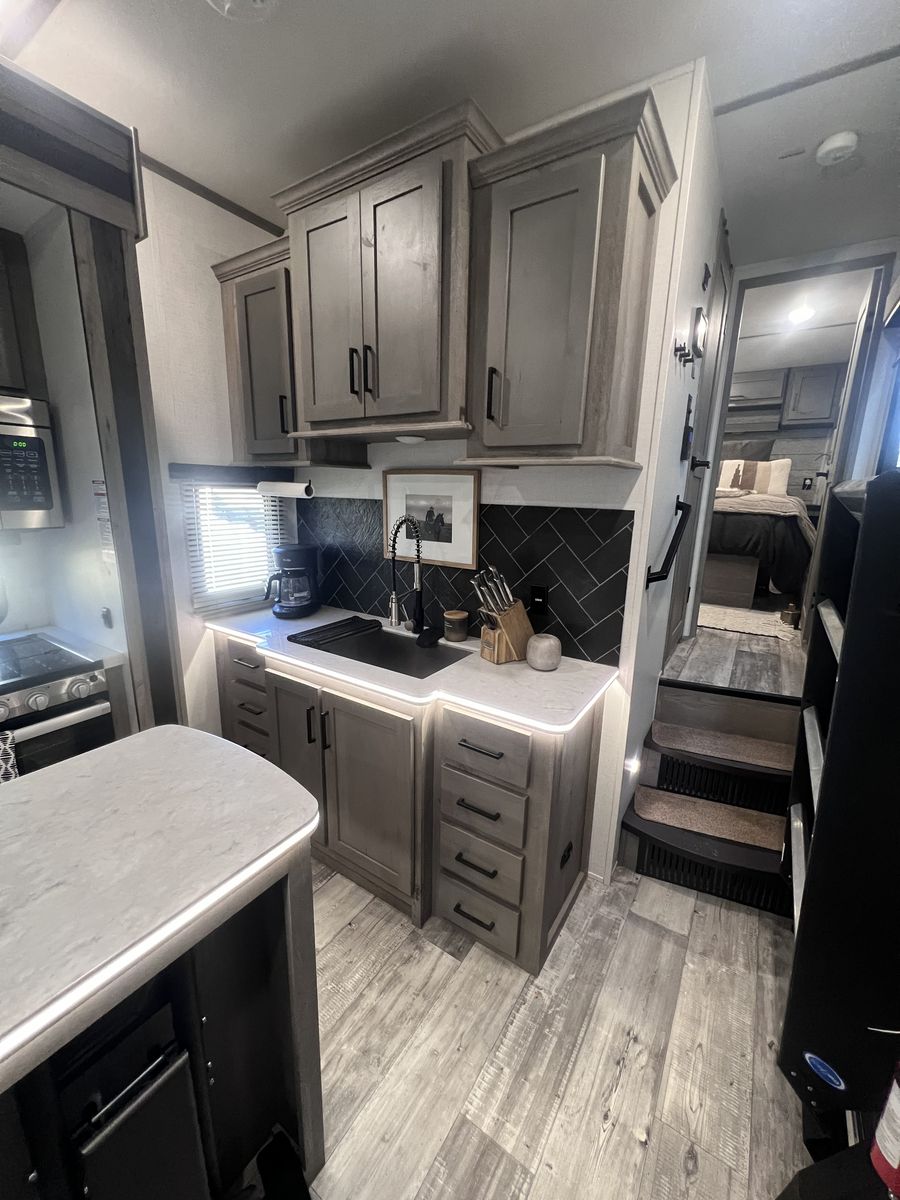 15 foot garage!! This toy hauler has been an awesome unit and we have maintained it very well. Everything works great with no issues and comes with every option for the year. Easily fit any 4 seat sxs with dirt bike in the garage. This trailer tows smooth down the highway. Also included is an Anderson hitch rated at 24,000 lbs. Some options include: *100 gal fresh water *Tankless water heater *Electric fire place with heat *3 TV’s *King size master bed with under storage *massage sofa with heat *LED interior lighting throughout *Glass storm doors in garage (removable) *5,000 watt onboard generator \