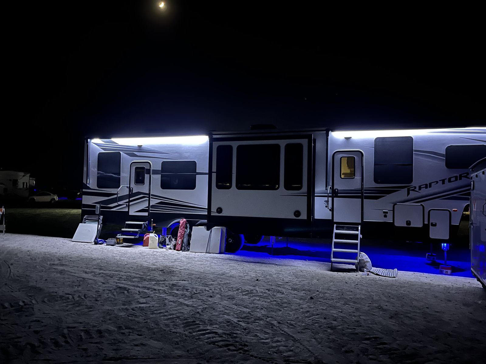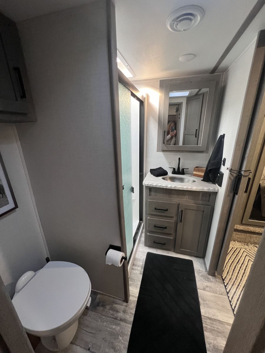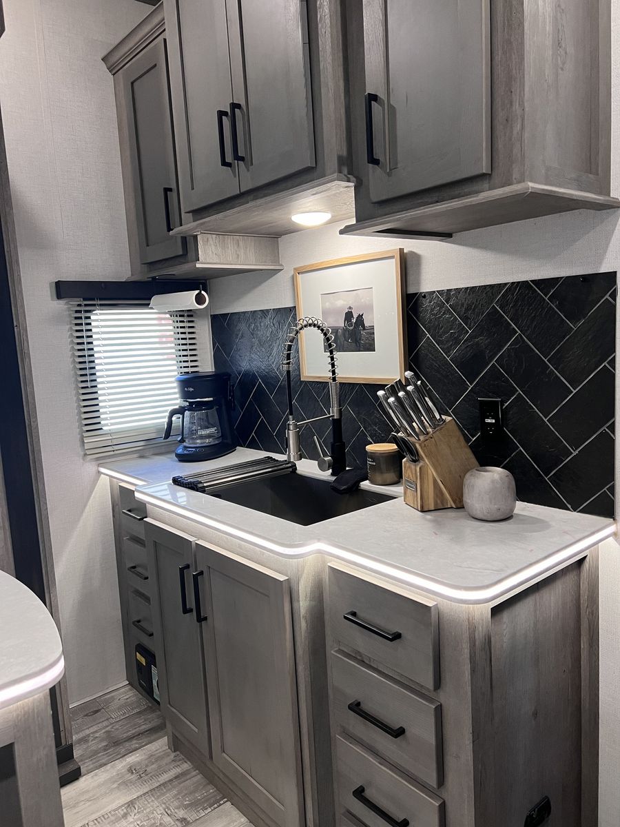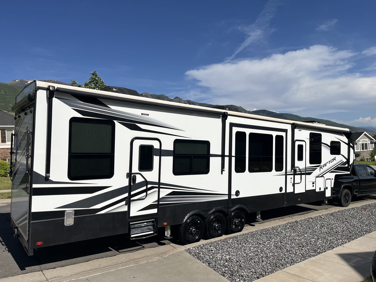 15 foot garage!! This toy hauler has been an awesome unit and we have maintained it very well. Everything works great with no issues and comes with every option for the year. Easily fit any 4 seat sxs with dirt bike in the garage. This trailer tows smooth down the highway. Also included is an Anderson hitch rated at 24,000 lbs. Some options include: *100 gal fresh water *Tankless water heater *Electric fire place with heat *3 TV’s *King size master bed with under storage *massage sofa with heat *LED interior lighting throughout *Glass storm doors in garage (removable) *5,000 watt onboard generator \