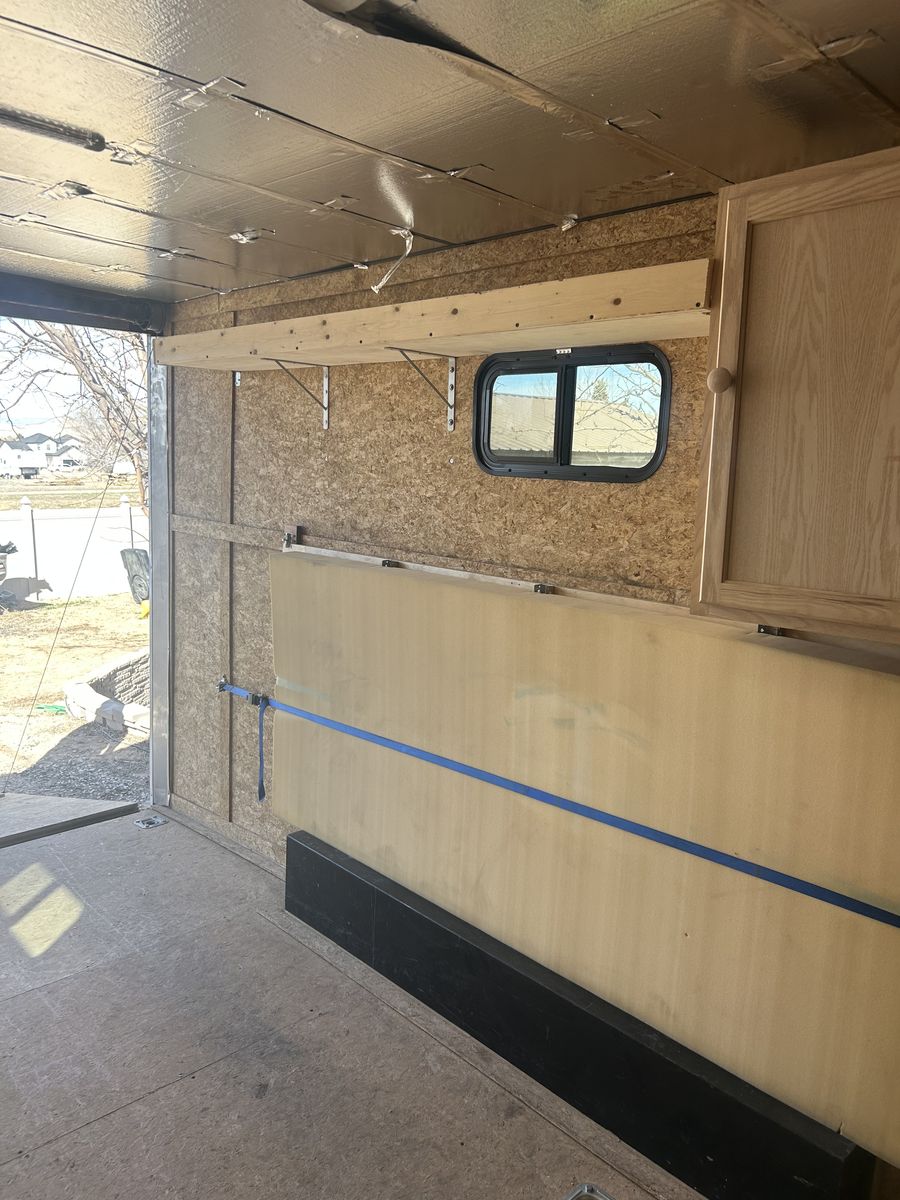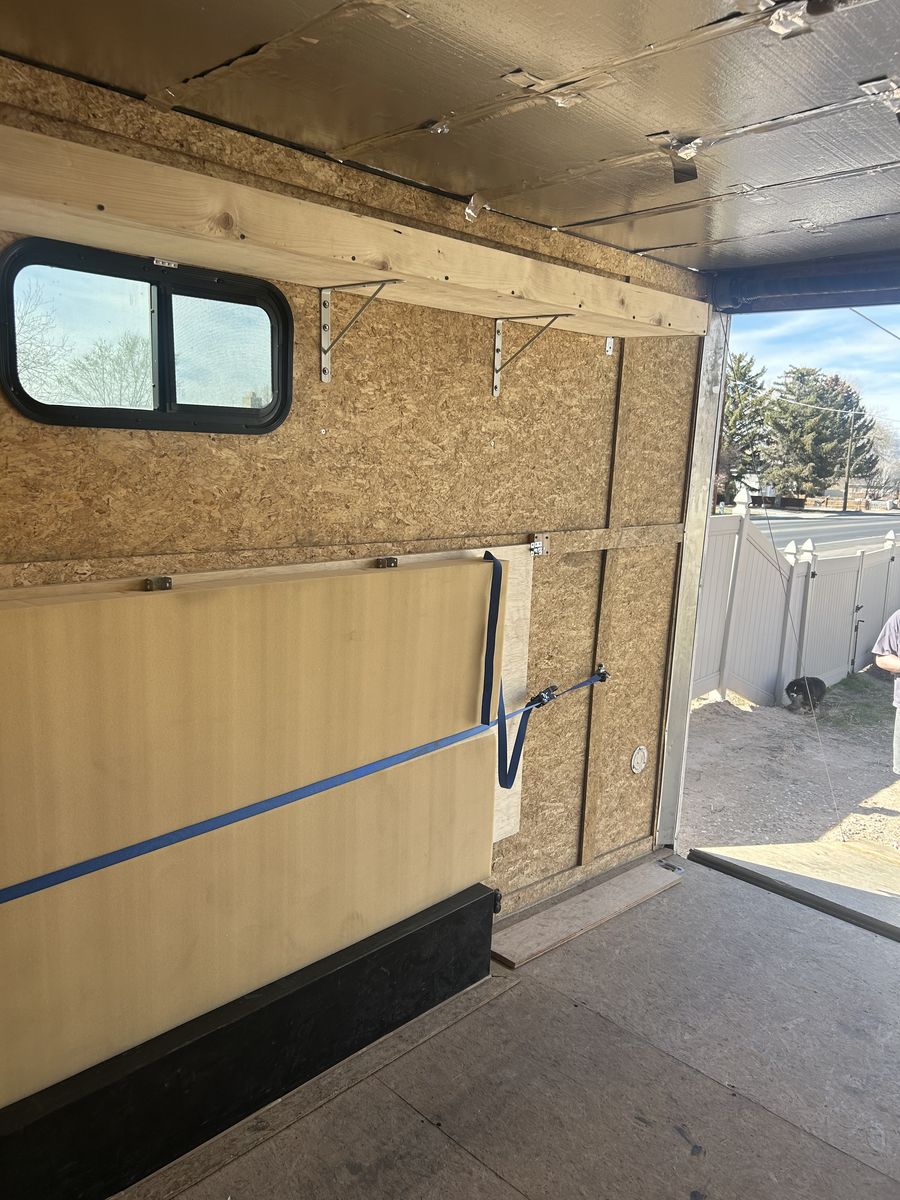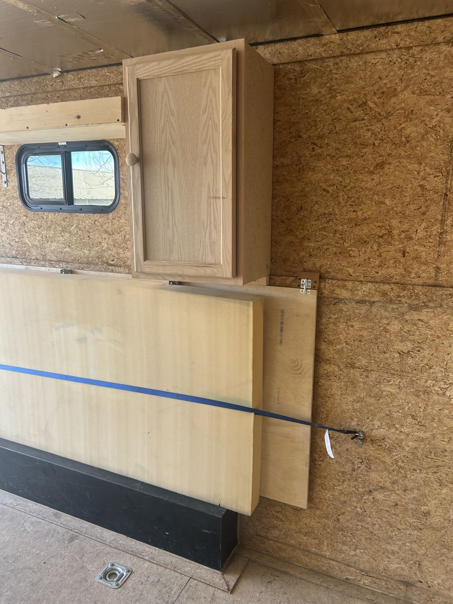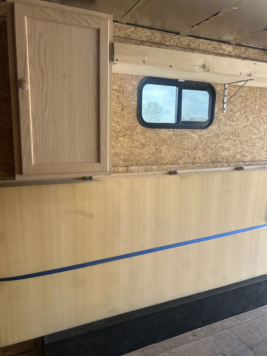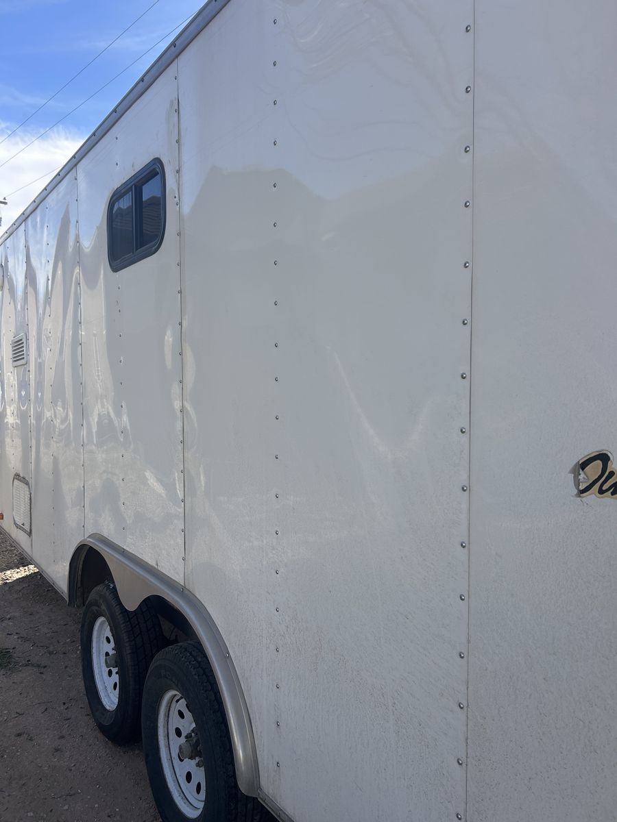 Venmo18' enclosed trailer, with insulated installed, has a new fridge/freezer installed; an axle flip on it, so it's 4 or 5" taller than it was. Has a bracket for a propane tank in the front. Two fold down beds with microwave and cabinets. Title in hand OBO.