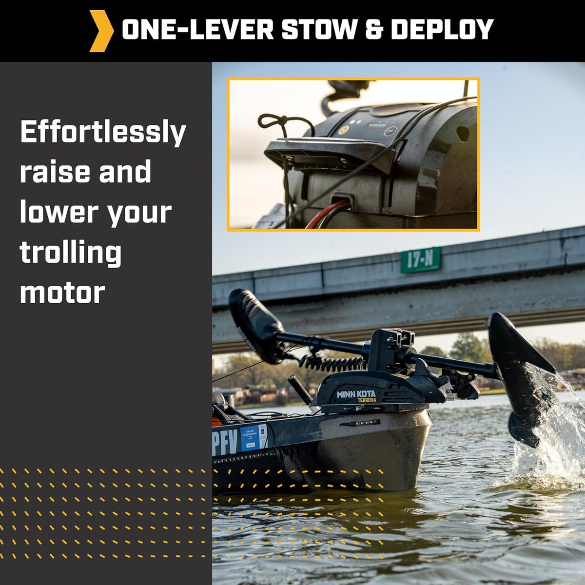 Advanced GPS Navigation System with Spot-Lock Technology: Maintains precise position and allows automatic boat control through micro remote or One-Boat Network App Easy Stow/Deploy System with Auto Park: Get on the water faster with one-lever launch and stow operation and automatic motor positioning