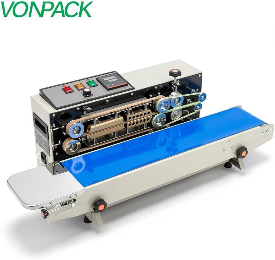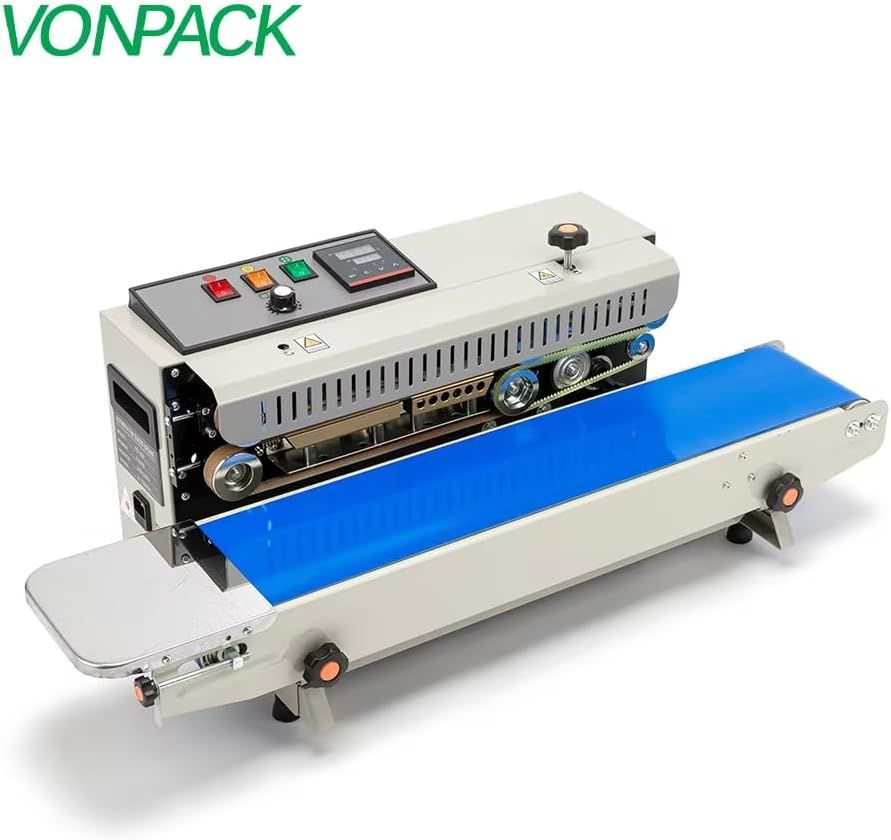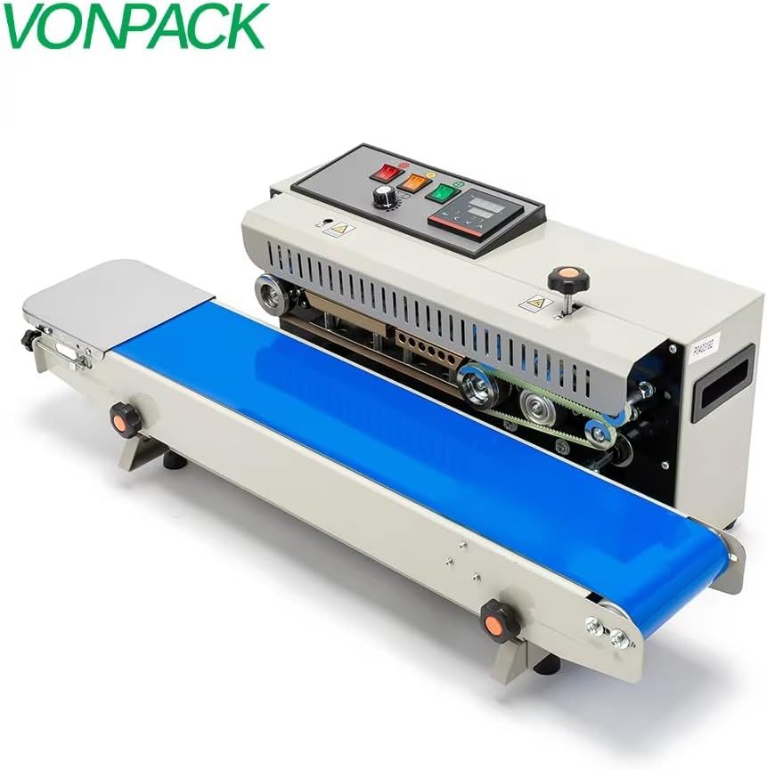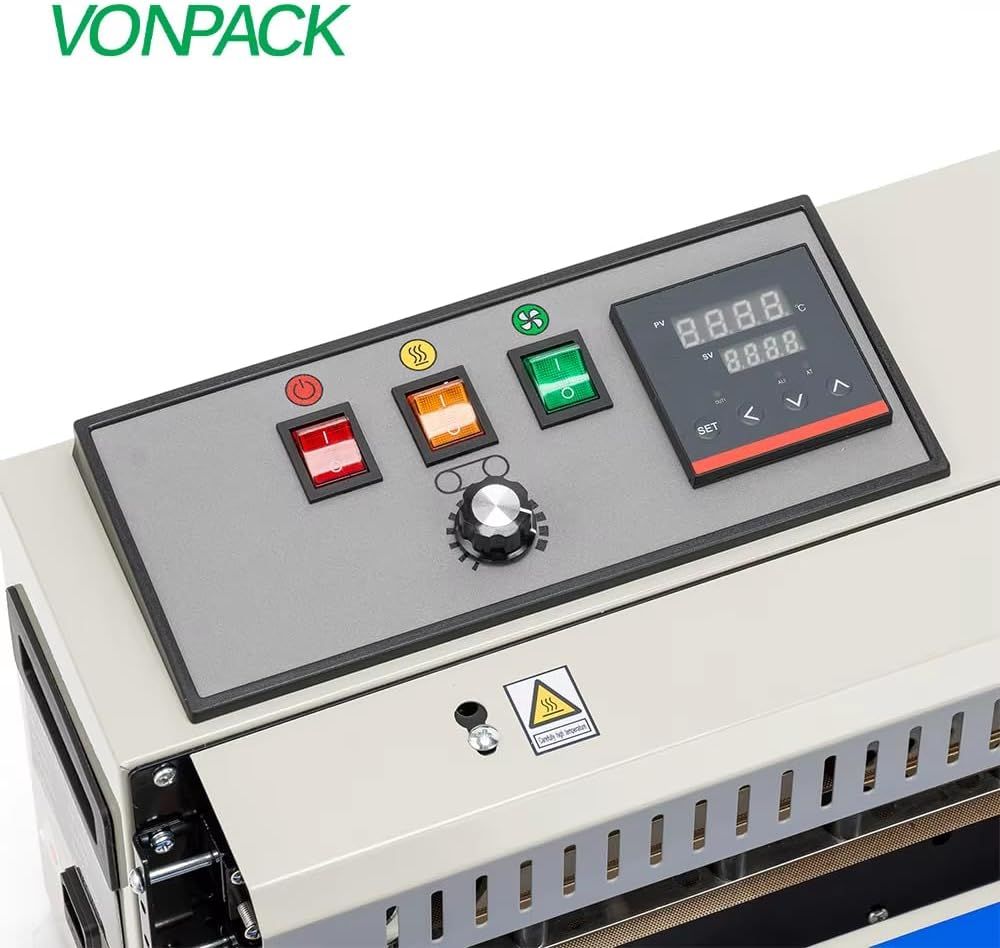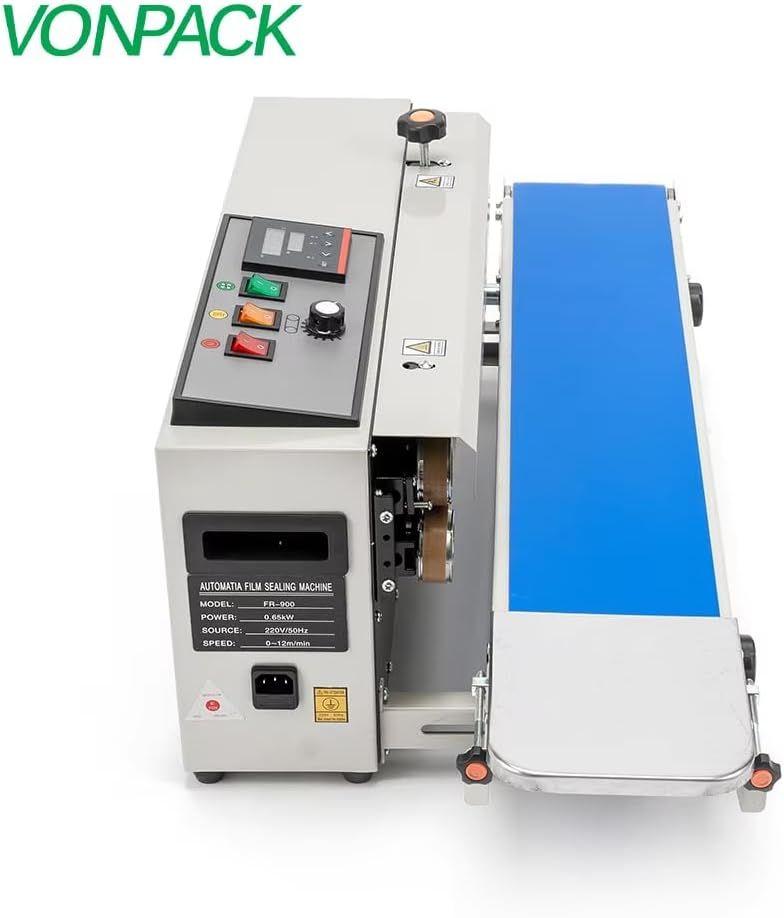 ApplePayVONPACK FR-900 Automatic Continuous Band Sealing Machine Bag Sealer Industrial Factory Kitchen Packing Machine Heat Sealing Adjustable Intelligent Temperature Control for Plastic Bag Food Film
