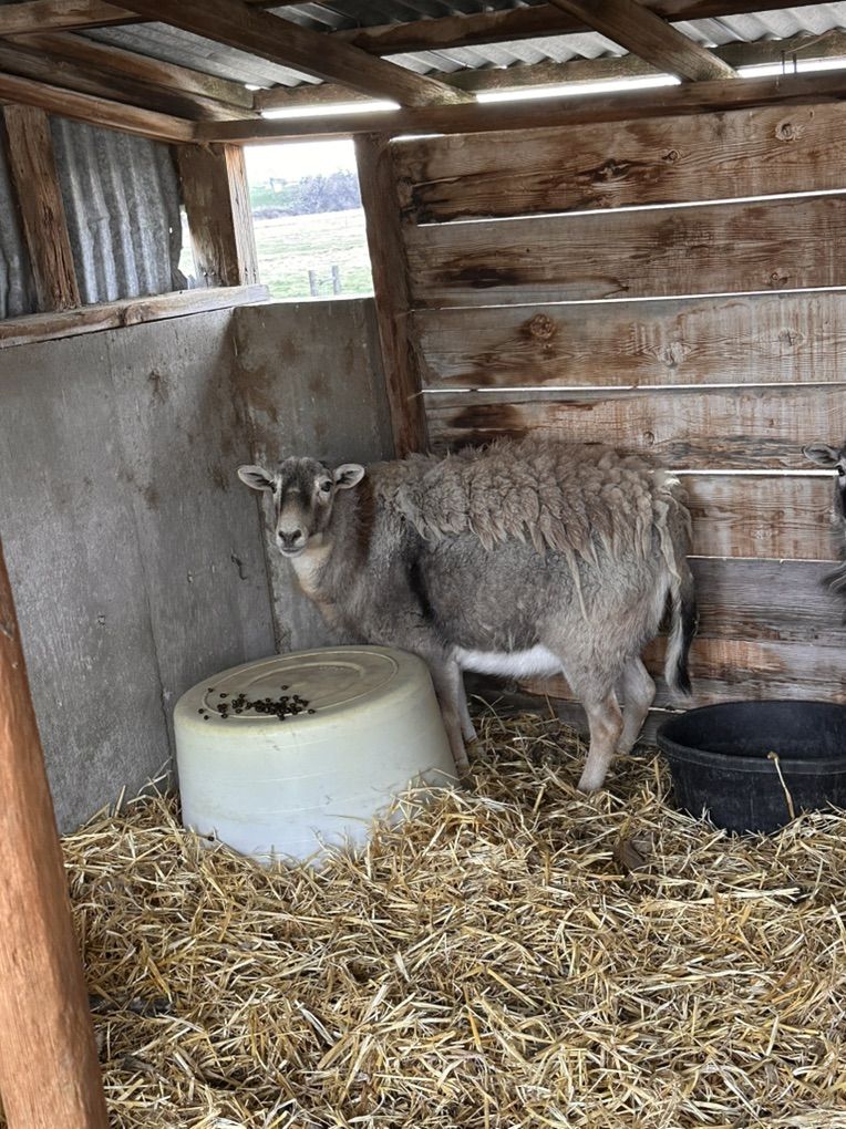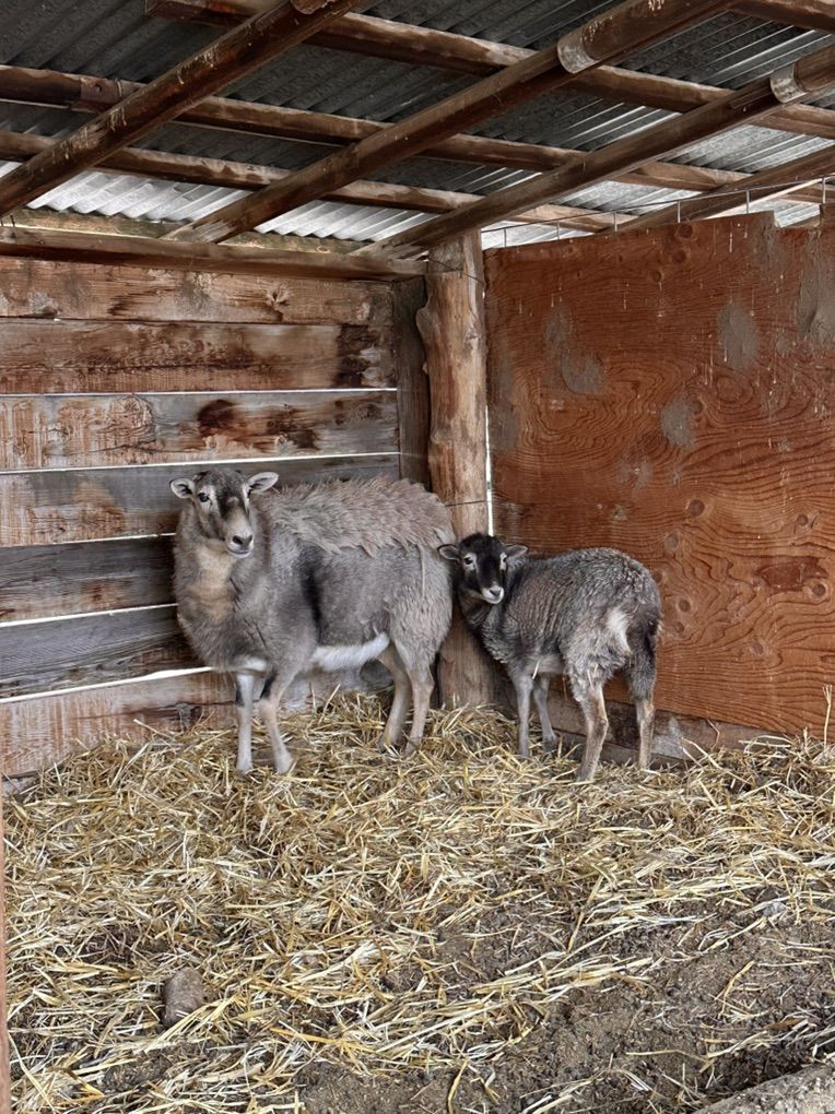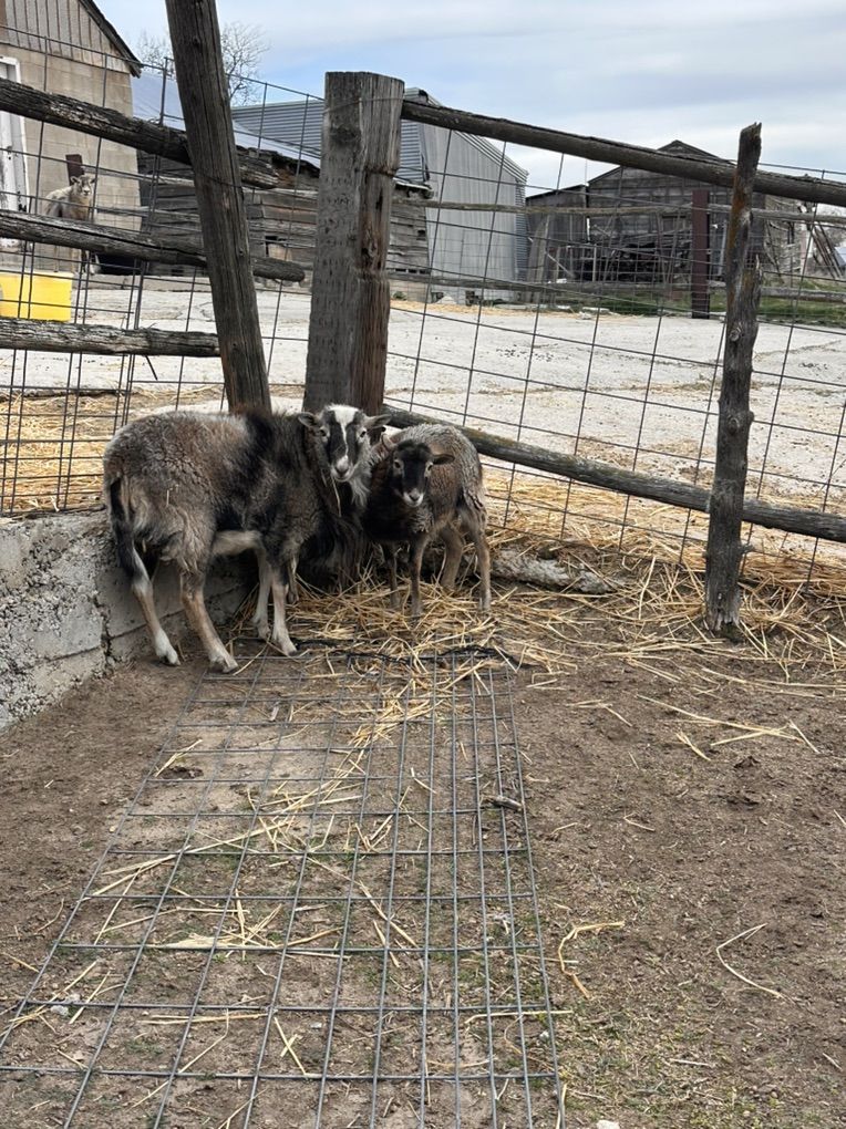 Barbados black belly x Katahdin 2yr Ewe and her ram and ewe lambs twins born spring 2025.