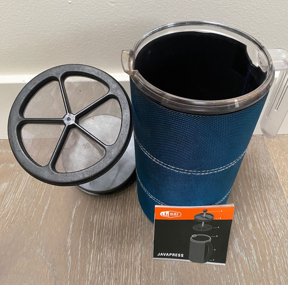 Clean, fresh with the directions - GSI Outdoors JavaPress+ Portable French Coffee Press.