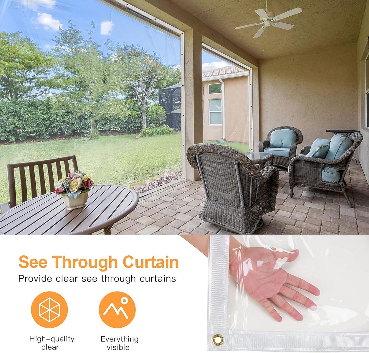 EVERYTHING IS VISIBLE: The waterproof trap curtain is transparent, so the advantage of this design is that you can see the outside situation when you sit inside, and the outdoor transparent curtain will not affect the design and beauty of the building itself.