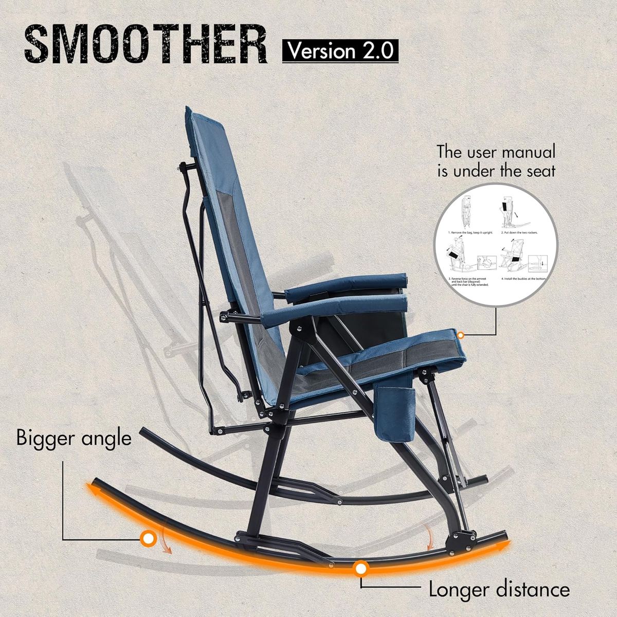 Heavy Duty with Hard Armrests: This camping rocking chair is sturdy and easy in and out. Constructed with a sturdy thickened steel frame and high density polyester, you can absolutely trust its sturdiess to embrace nature and life to the fullest