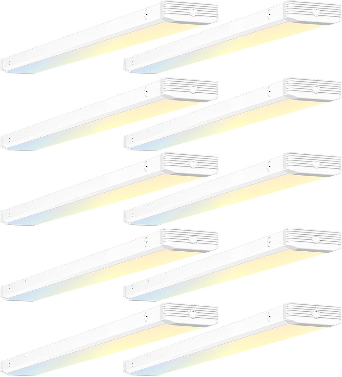 ApplePayBBOUNDER 10 Pack 4FT LED Wraparound Light with 3CCT Selectable, 4000K/5000K/6500K, Super Bright 5500LM 50W 4 Foot Fluorescent Fixture, Flush Mount Office Ceiling Light for Kitchen Garage, White
