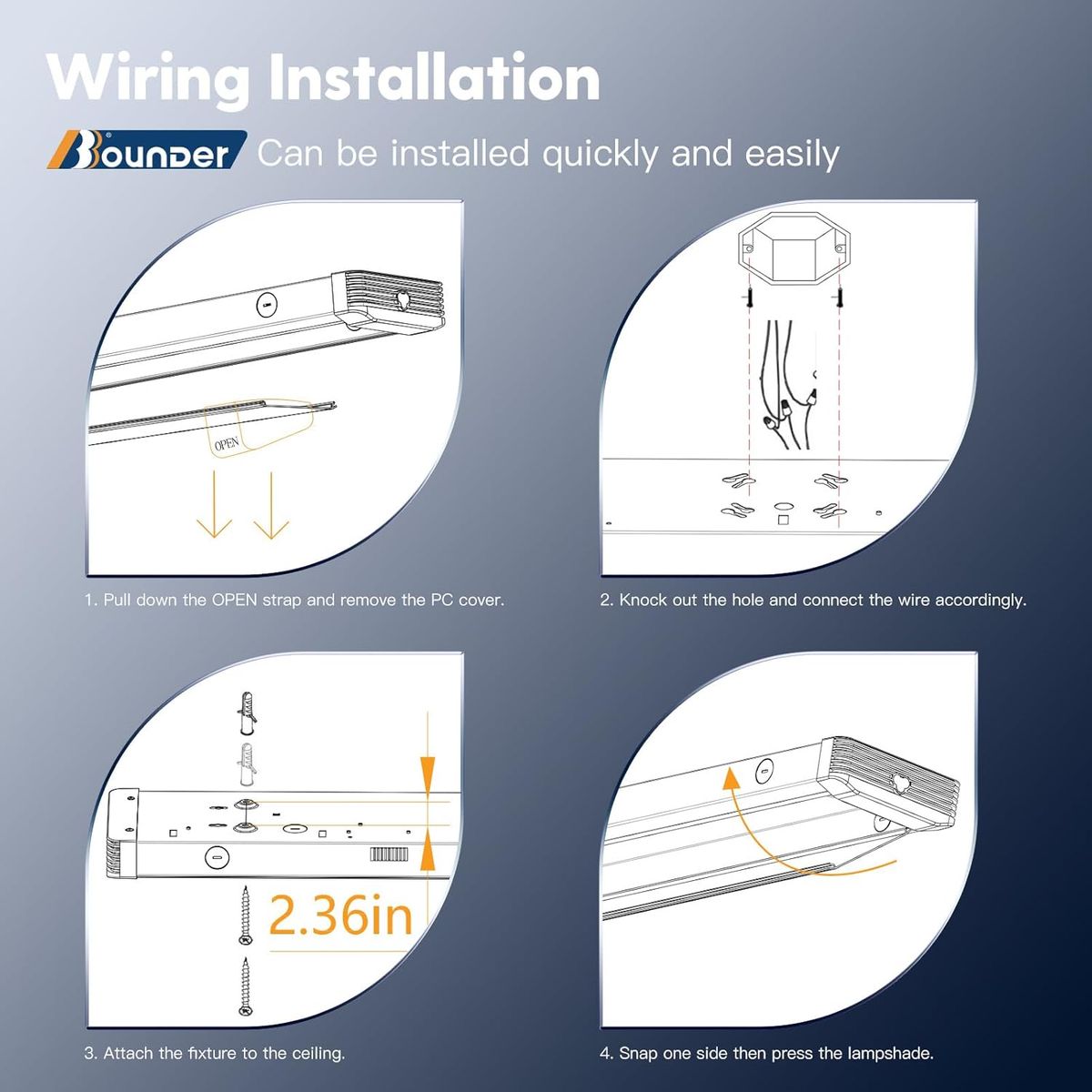 Versatile use: Our 4-foot LED wraparound light can be easily mounted ceilings, making it ideal for various spaces such as kitchens, laundry rooms, utility areas, stairwells, and offices. It is suitable for use in both residential and commercial settings.
