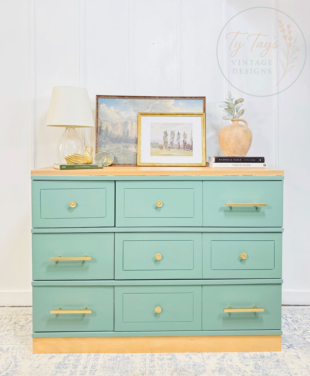 VenmoThis one-of-a-kind 6-drawer dresser has been beautifully refinished in a fresh and elegant muted jade green, offering a perfect blend of modern sophistication and vintage character. The solid wood frame provides durability, while the clean lines and updated finish make this piece a timeless statement for any home. If you’re looking for a quality, custom-finished piece that stands out from the rest – this is it.