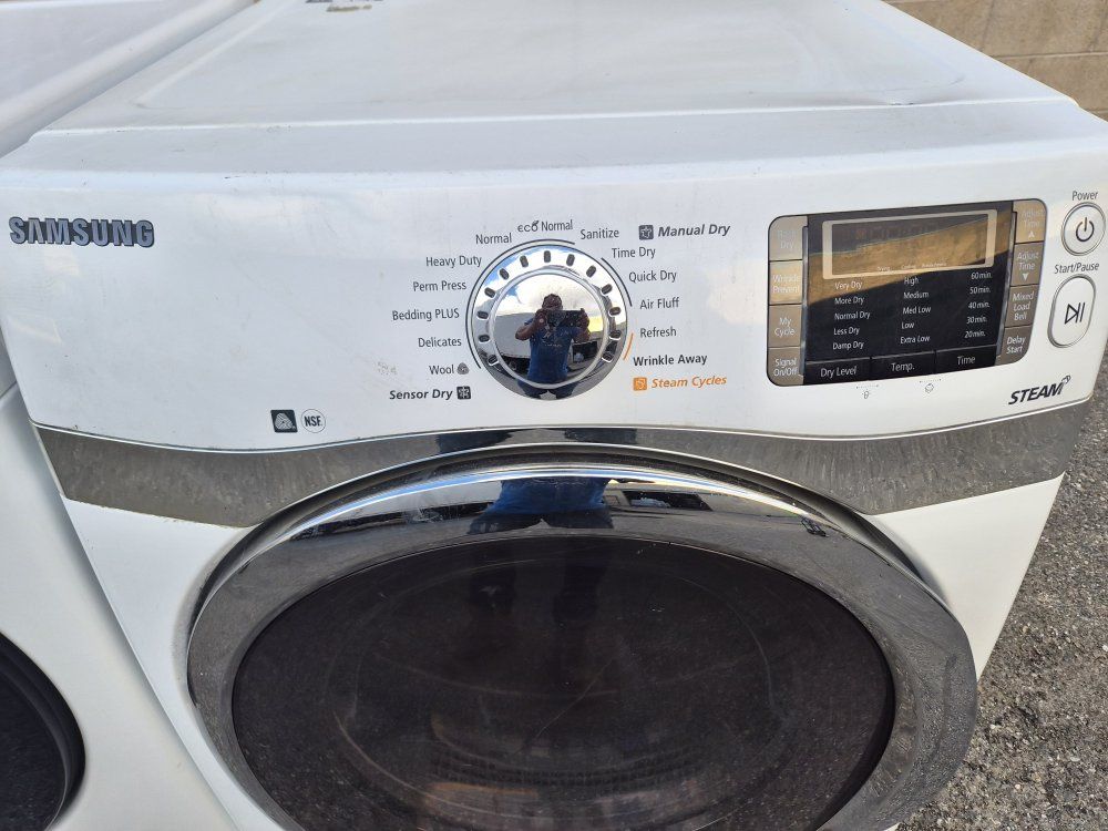 The washer and front-loading dryer can be used together or stacked. Heavy work and commercial quality. It has all the options, cycles and heat levels and it looks and works like new. It comes with warranty and delivery on the sidewalk available.