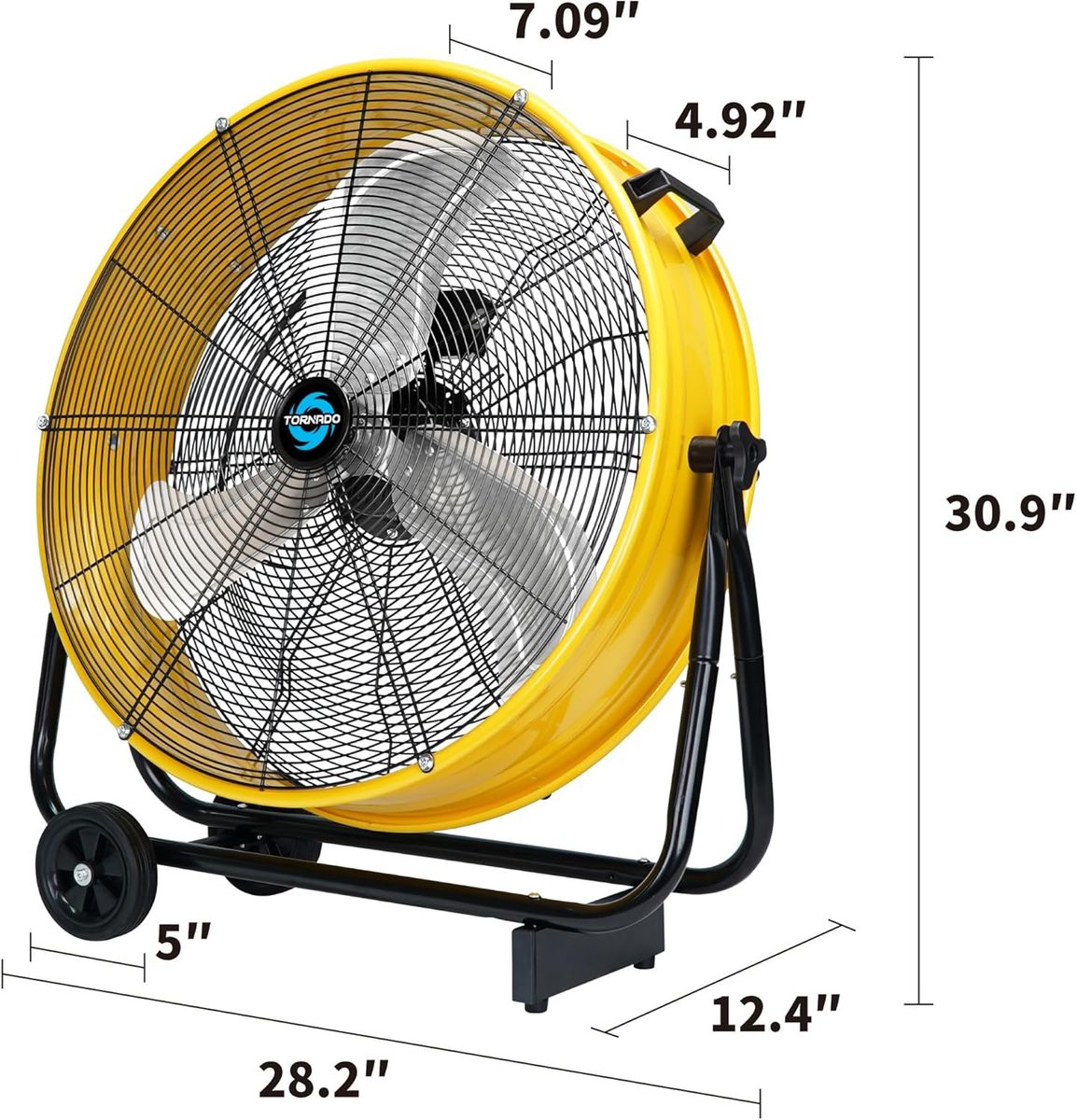 ApplePayTornado 24" Metal Drum Fan - High Velocity, 7700 CFM, 3-Speed, Heavy Duty for Industrial & Commercial Use, 1/3 HP Motor, 8 FT Cord, ETL Listed