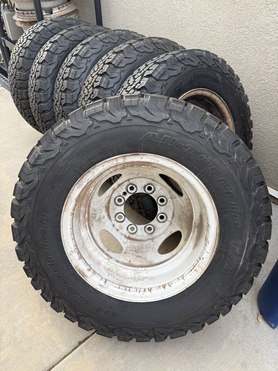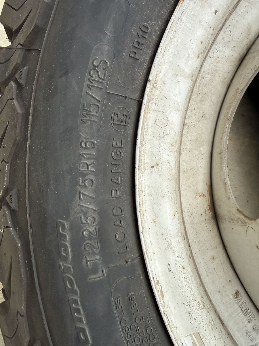 Zelle6 new tires, BFG’s All terrain tires. LT225/75R16 600 miles on the. 4 have rims 2 don’t. Came off my motorhome. $900 call Vaughn At 801-916-8404