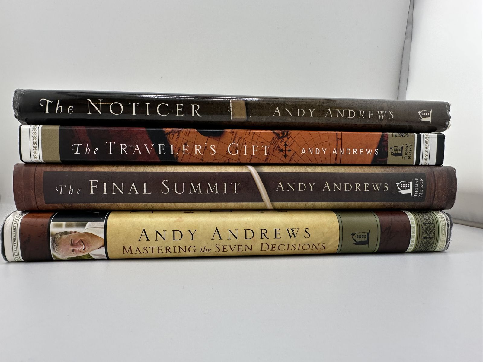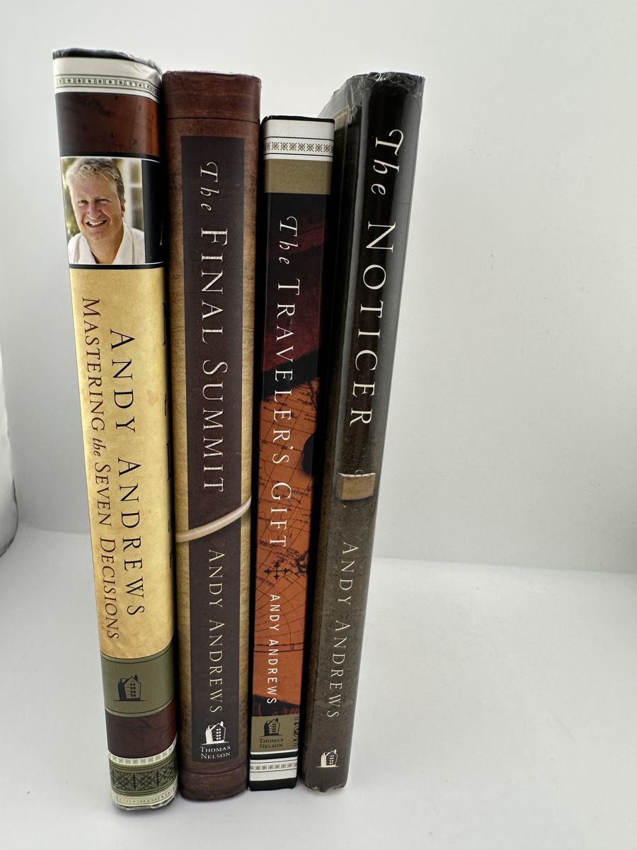 Complete 4-book collection by bestselling author Andy Andrews, including The Traveler’s Gift, The Noticer, The Final Summit, and Mastering the Seven Decisions. These motivational and inspirational classics combine storytelling with powerful life principles focused on success, leadership, and personal responsibility.
