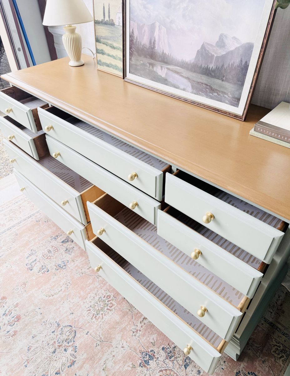 VenmoThis stunning, solid wood dresser is exceptionally sturdy and heavy, with smoothly operating drawers on wood tracks. Dovetailed drawers.