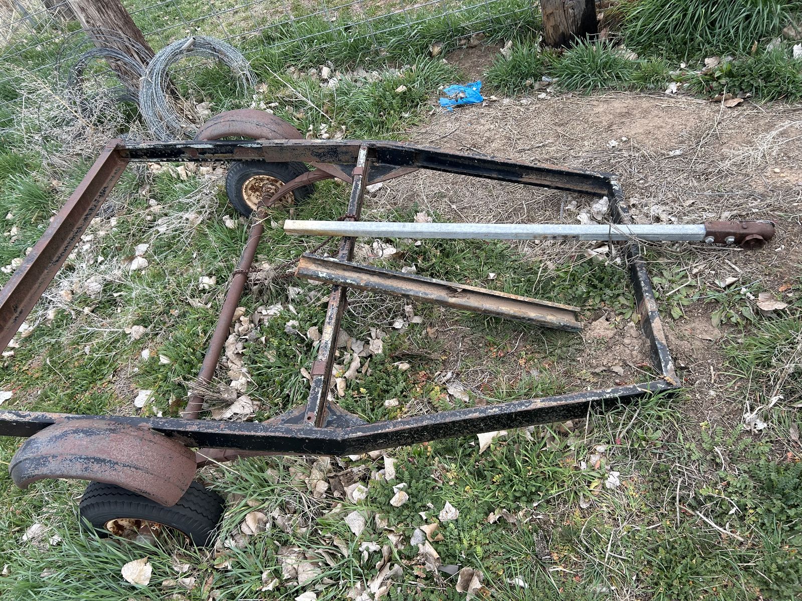 VenmoAre you handy? Needs the tongue welded on it and a deck put on it be good little yard trailer it’s roughly 3 feet wide by 5 feet long asking $180 OBO