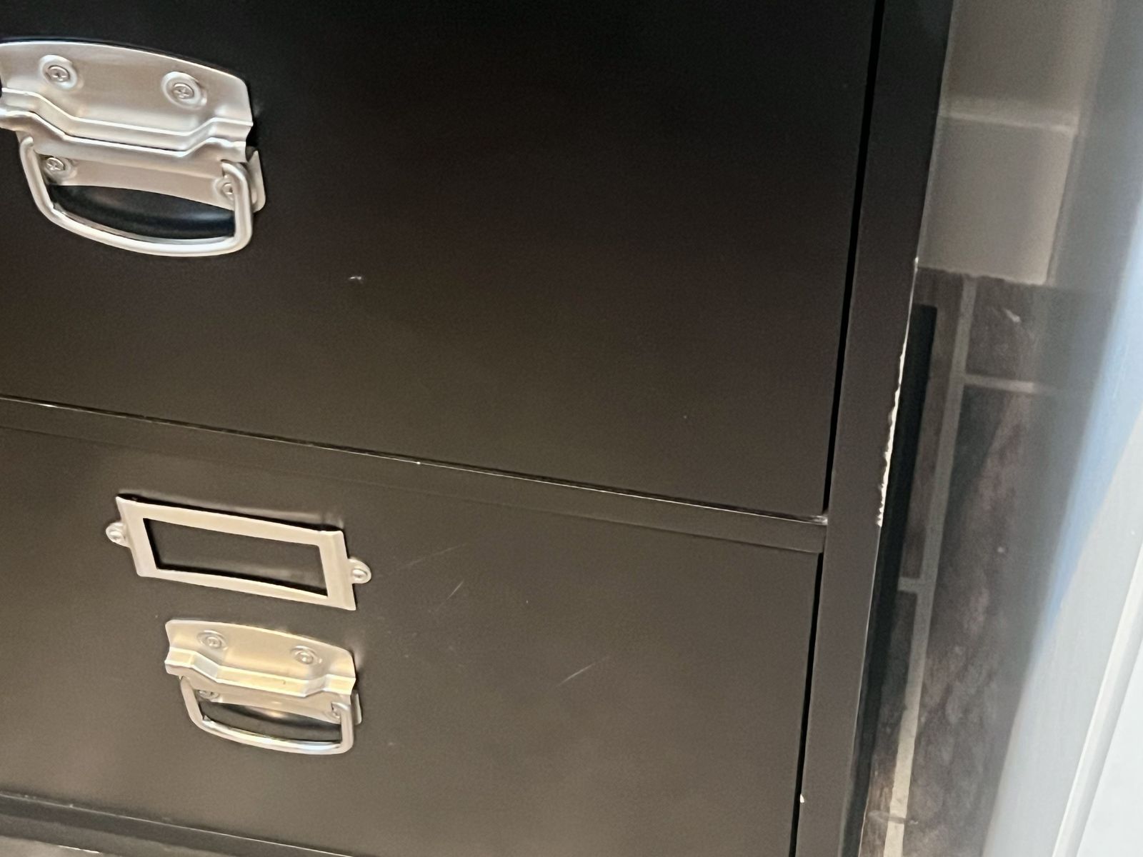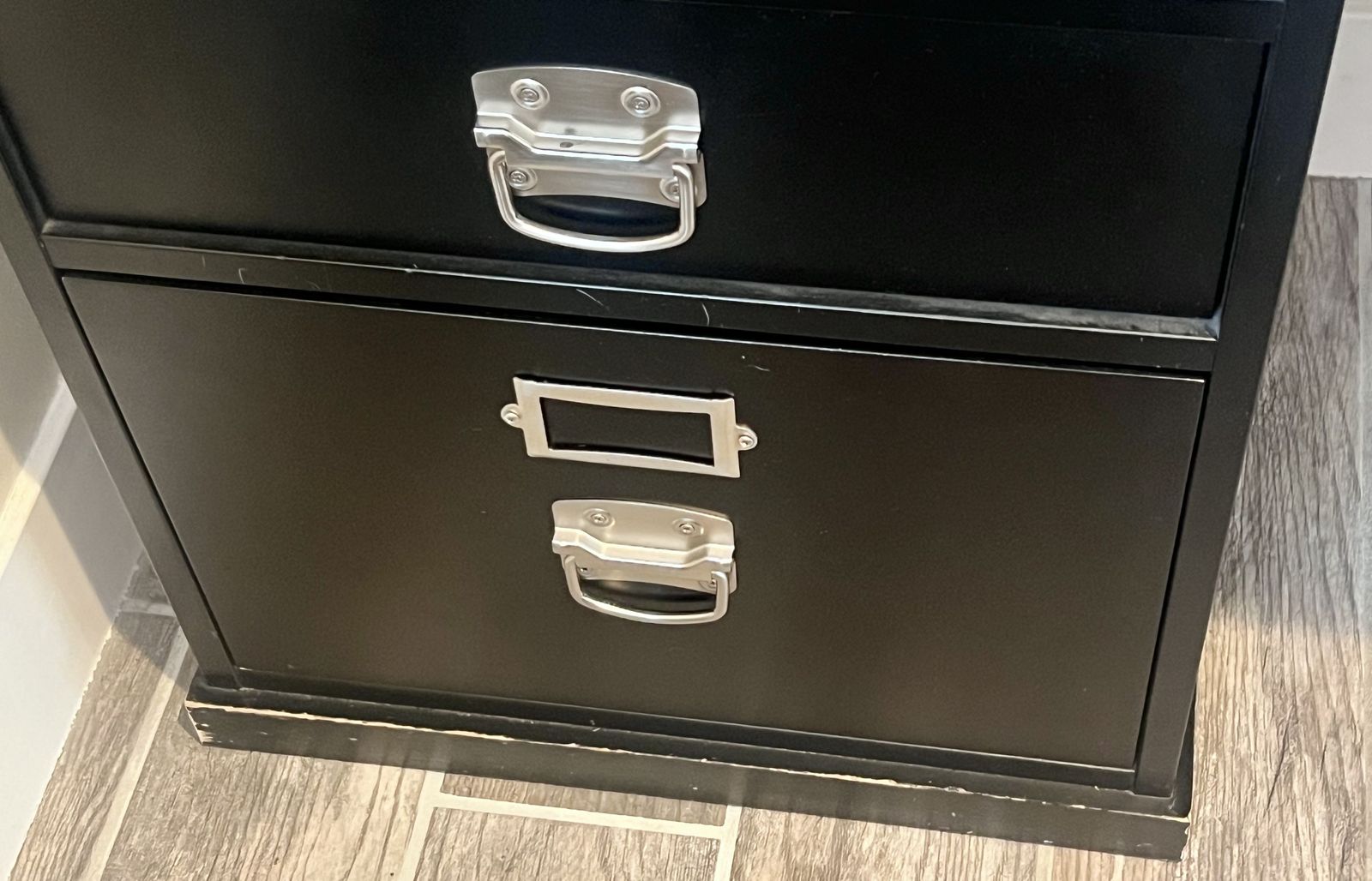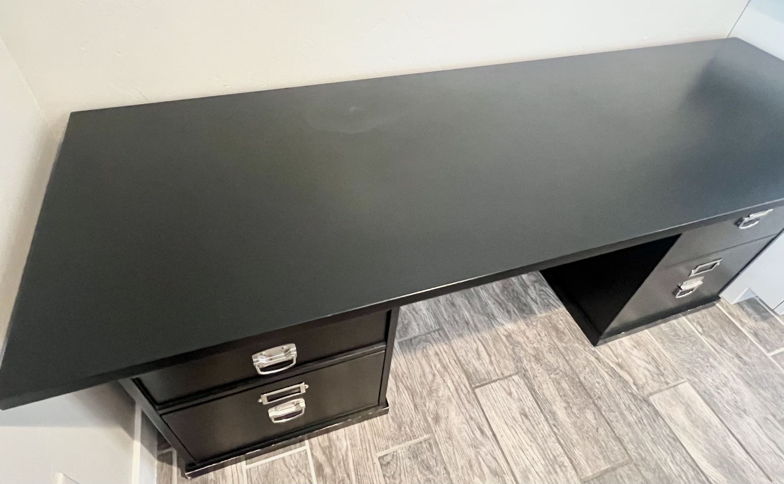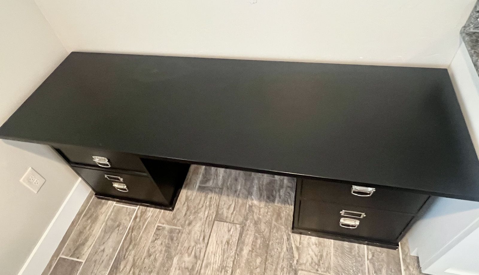 Features three file drawers (shown in the photos...two on the right and one on the bottom left) and two smaller drawers (shown in the photos...top two drawers on the left).