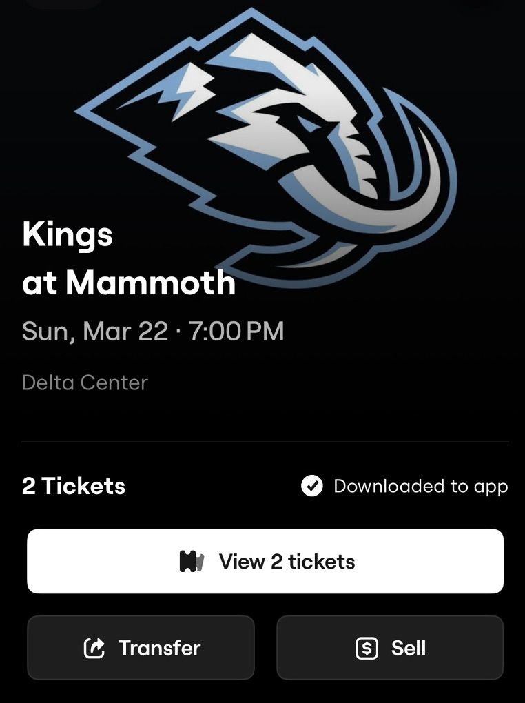 VenmoWe have 2 tickets available for tomorrow night, Sunday March 22, Utah Mammoth game against the Los Angeles Kings. $65 each which is our season ticket price. No fees. I’ll transfer on Seat Geak after Venmo Payment. Clear view of both goals on the attack side.