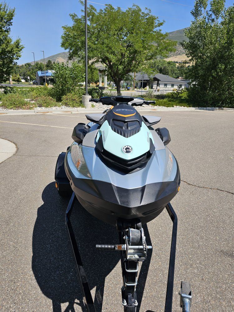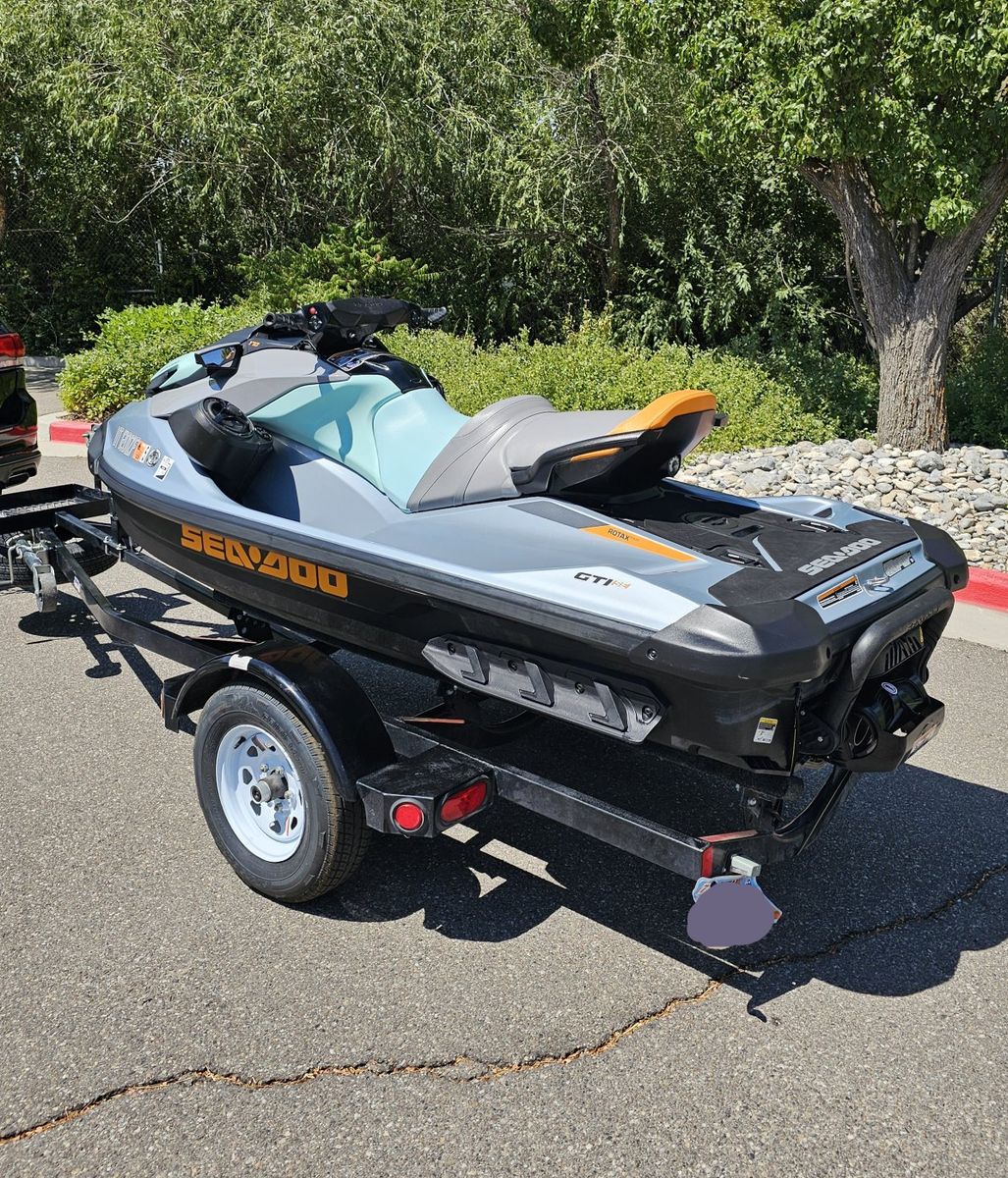 ZelleThe 2023 Sea-Doo GTI SE 170 is a versatile 3-seater recreational PWC featuring a 170-hp Rotax 1630 ACE engine, Polytec Gen II hull, and standard iBR (Intelligent Brake and Reverse). It offers a 4.5-inch digital display, optional iDF (Intelligent Debris-Free) system, and Bluetooth 100 Watt sound system. Only 26.3 hours on it. Comes with a single place trailer with a gas carrring basket. No trades.