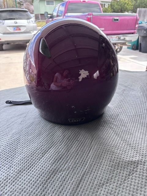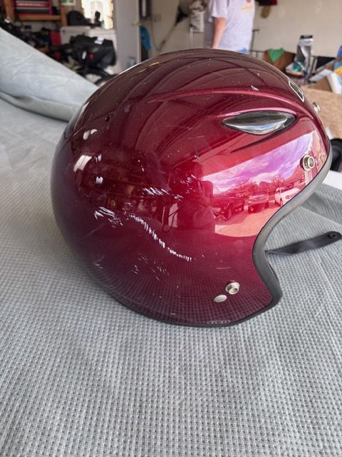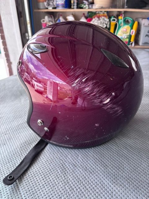 VenmoHelmet has NOT been in an accident. Scrathed up becasue my son latched it on the side of the motorcycle and it bounced around.