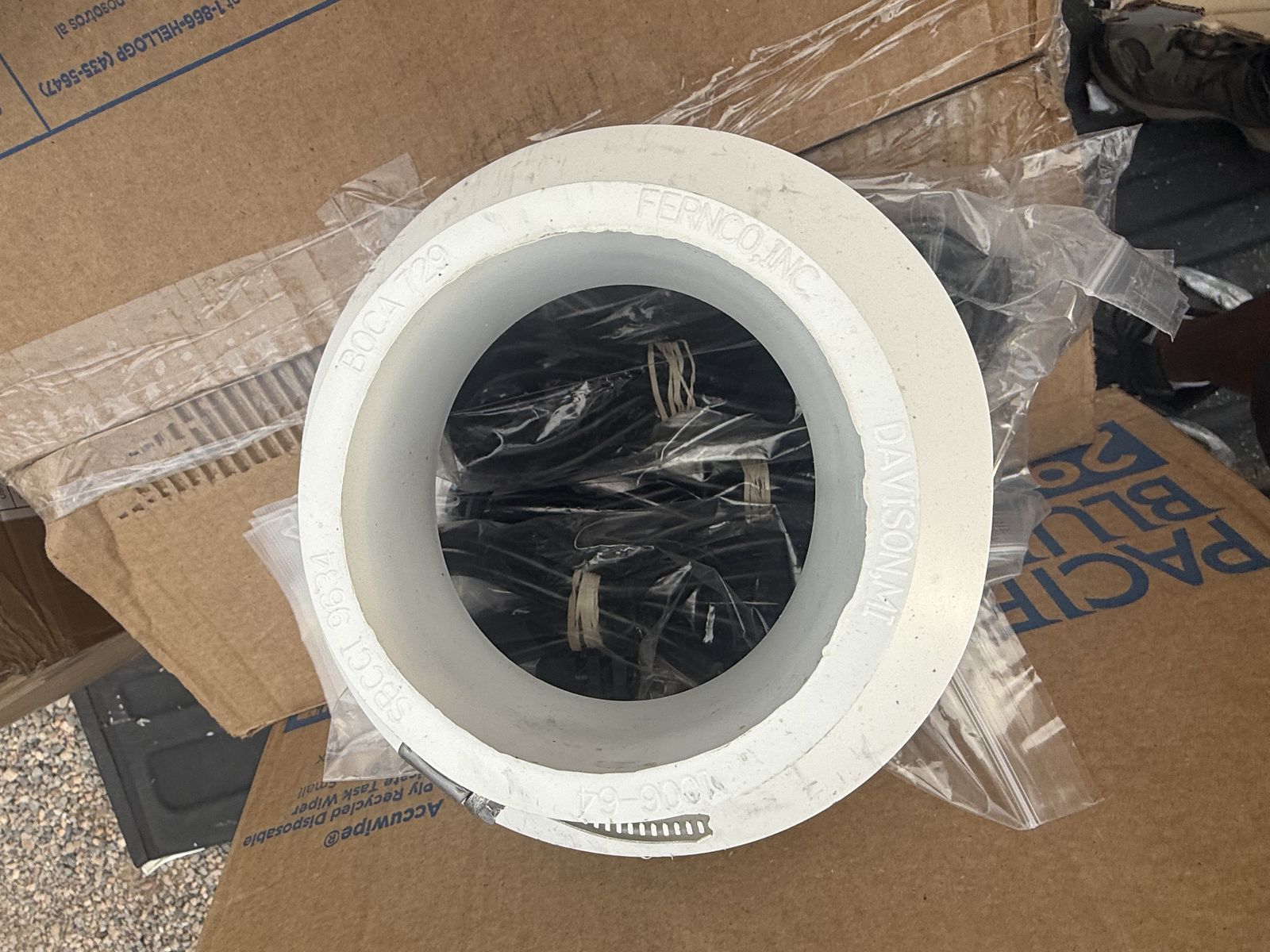 The Fernco 8 in. x 6 in. Flexible PVC Adapter is strong, resilient and unaffected by soil conditions. It resists chemicals, ultraviolet rays and fungus growth. The stainless-steel clamps are rustproof and corrosion resistant. The adapter connects pipes made of cast iron, plastic, copper, steel and lead in sewer, drainage, vent and waste systems.
