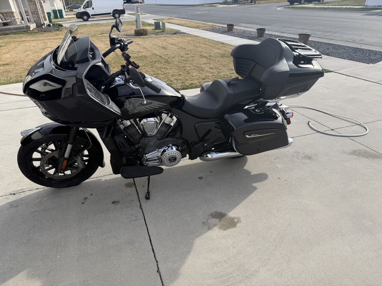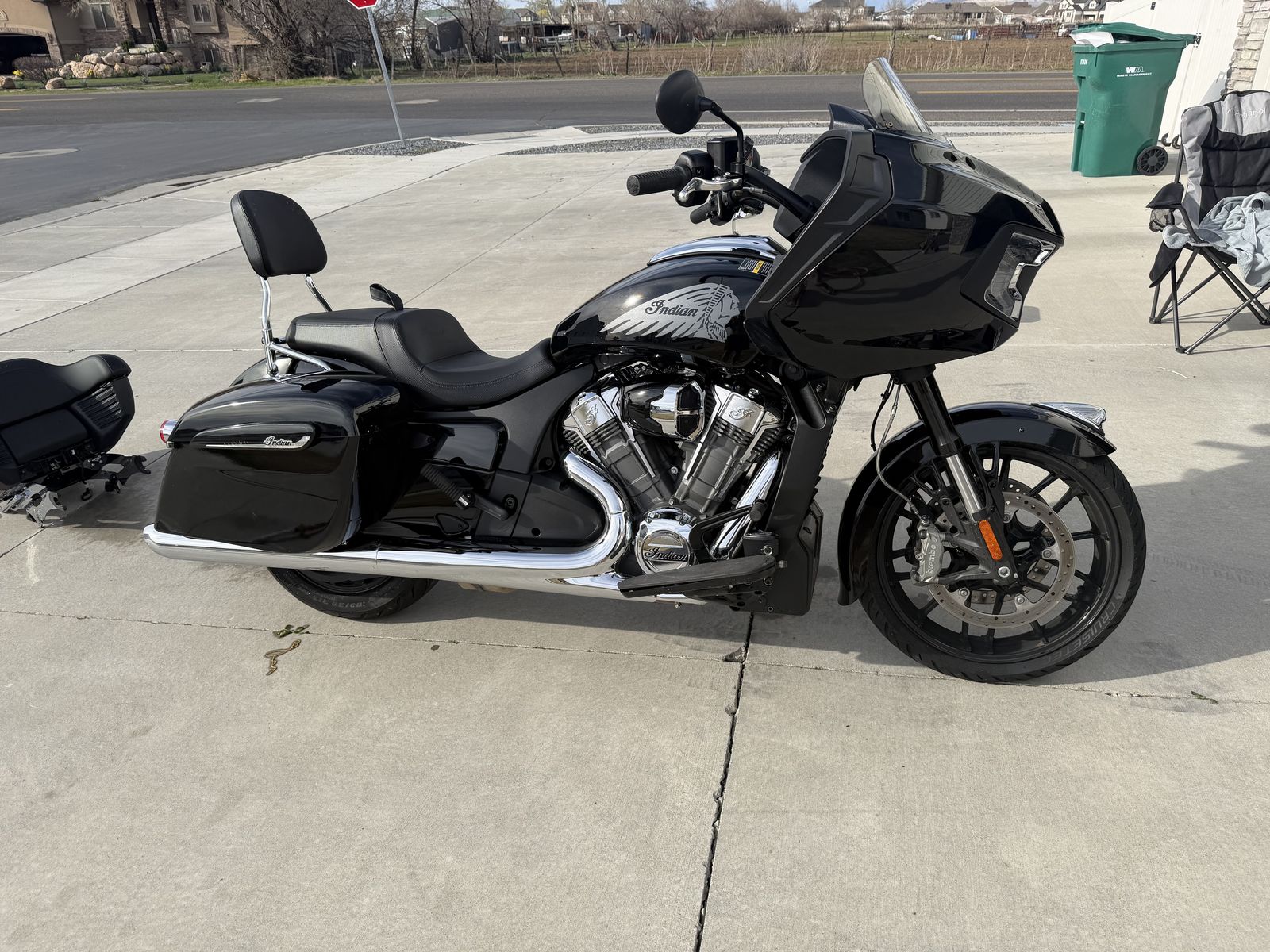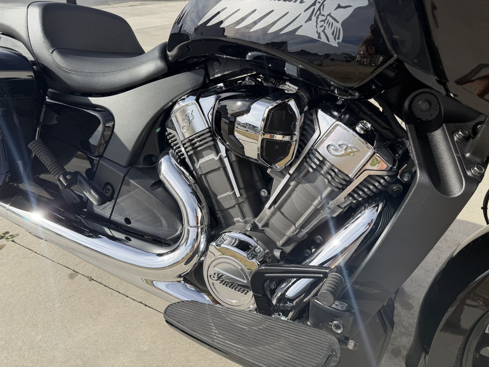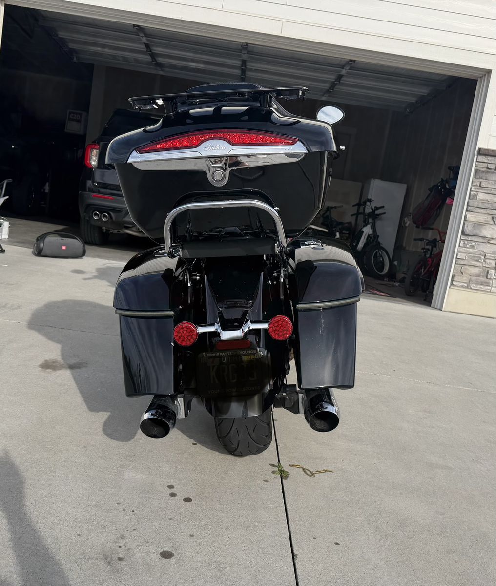Basically new Indian Challenger with aftermarket intake and Indian tune. Auto adjustable windshield. It also comes with two different sets of backs. One normal back breast and one trunk. I also put lights in the bags for more visibility. Very babied and kept in the garage always. In the winter time I have it covered as well. Barely over 4100 miles