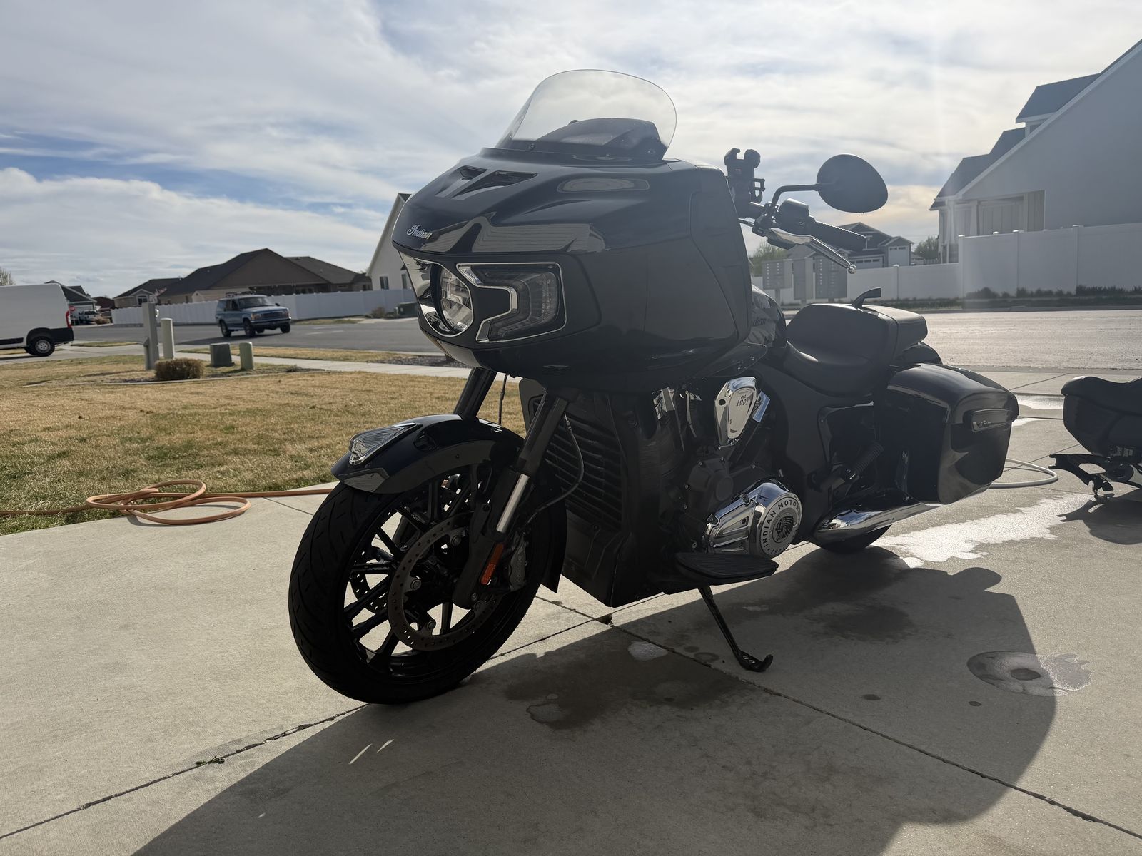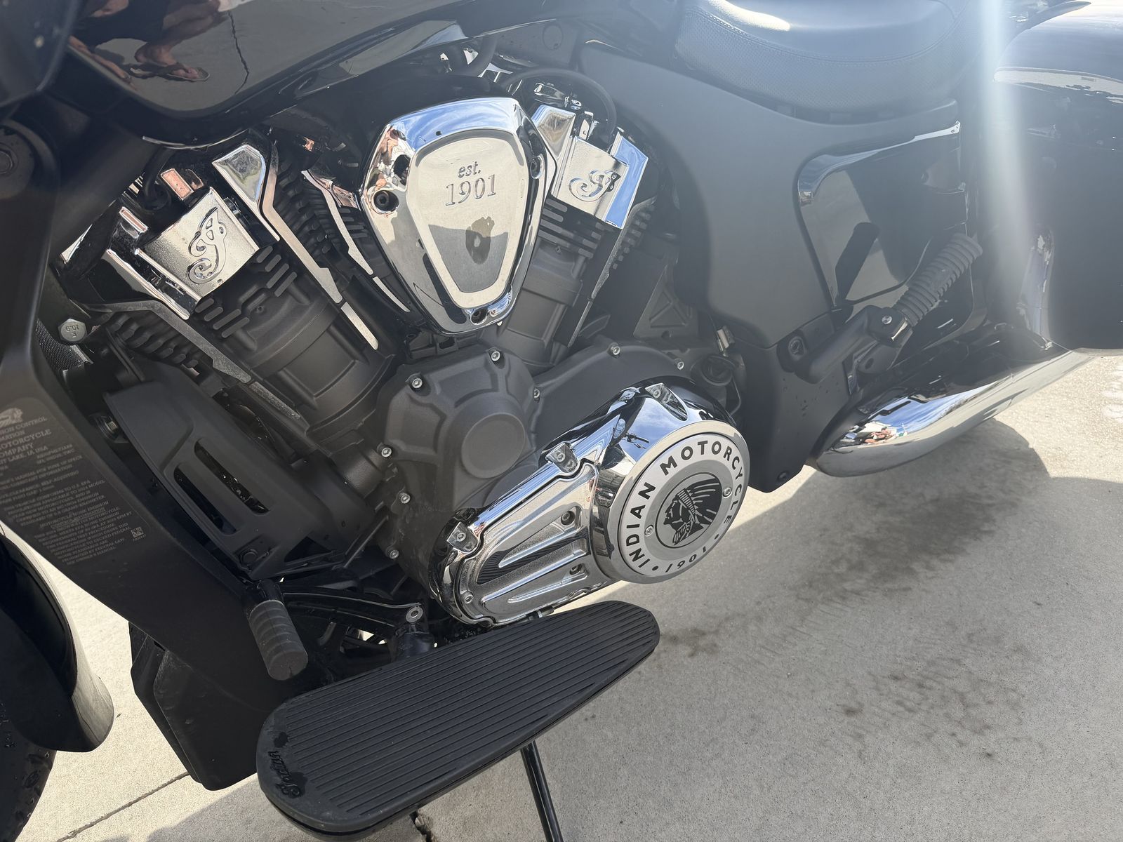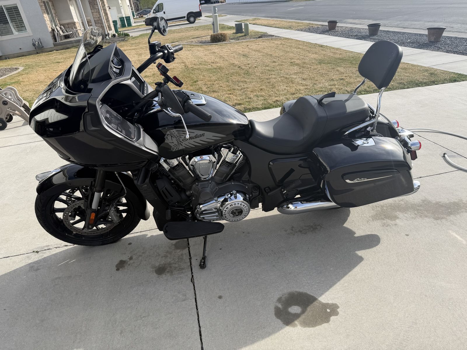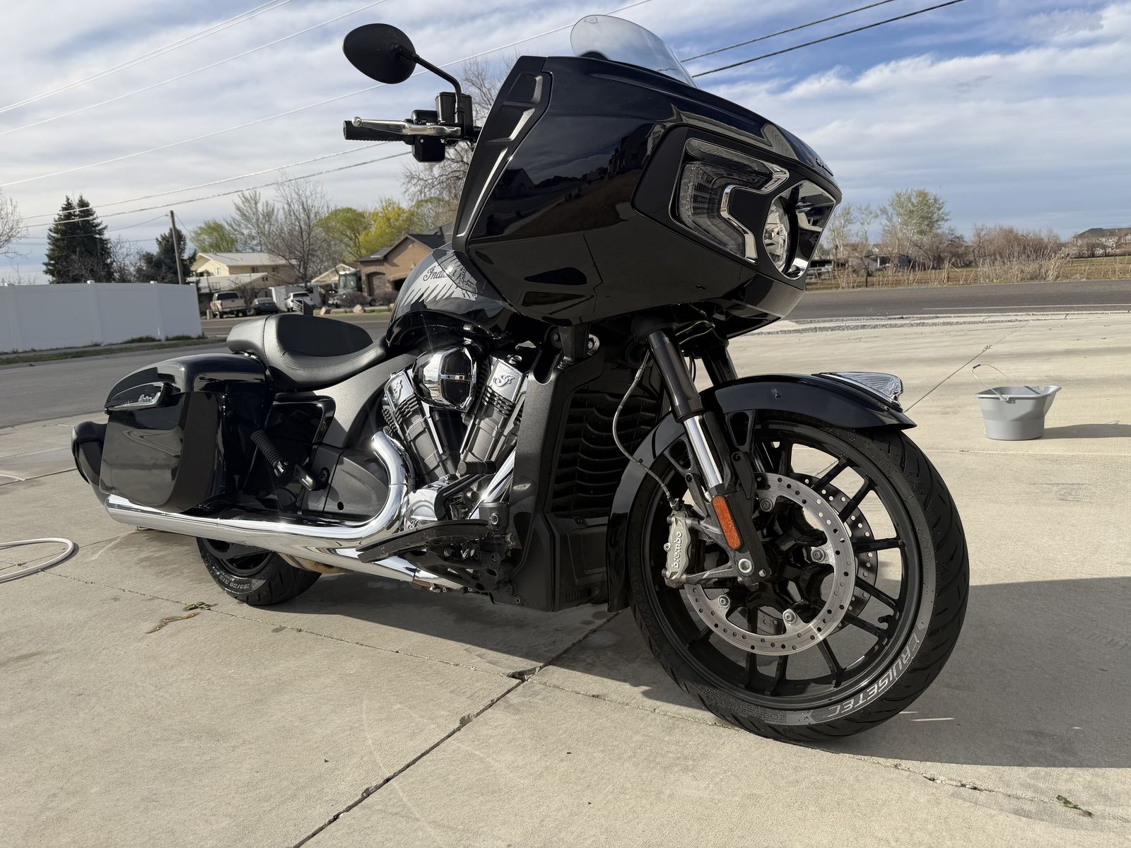Basically new Indian Challenger with aftermarket intake and Indian tune. Auto adjustable windshield. It also comes with two different sets of backs. One normal back breast and one trunk. I also put lights in the bags for more visibility. Very babied and kept in the garage always. In the winter time I have it covered as well. Barely over 4100 miles