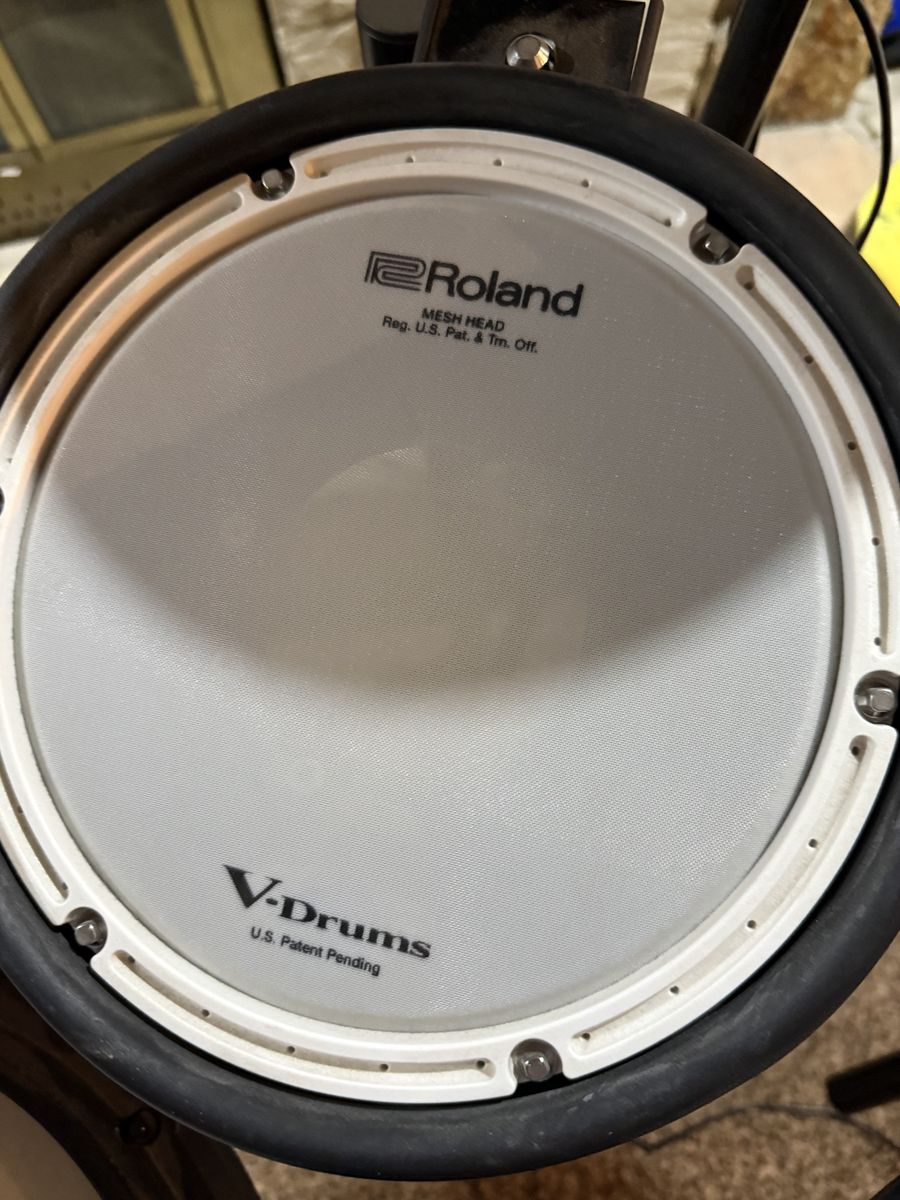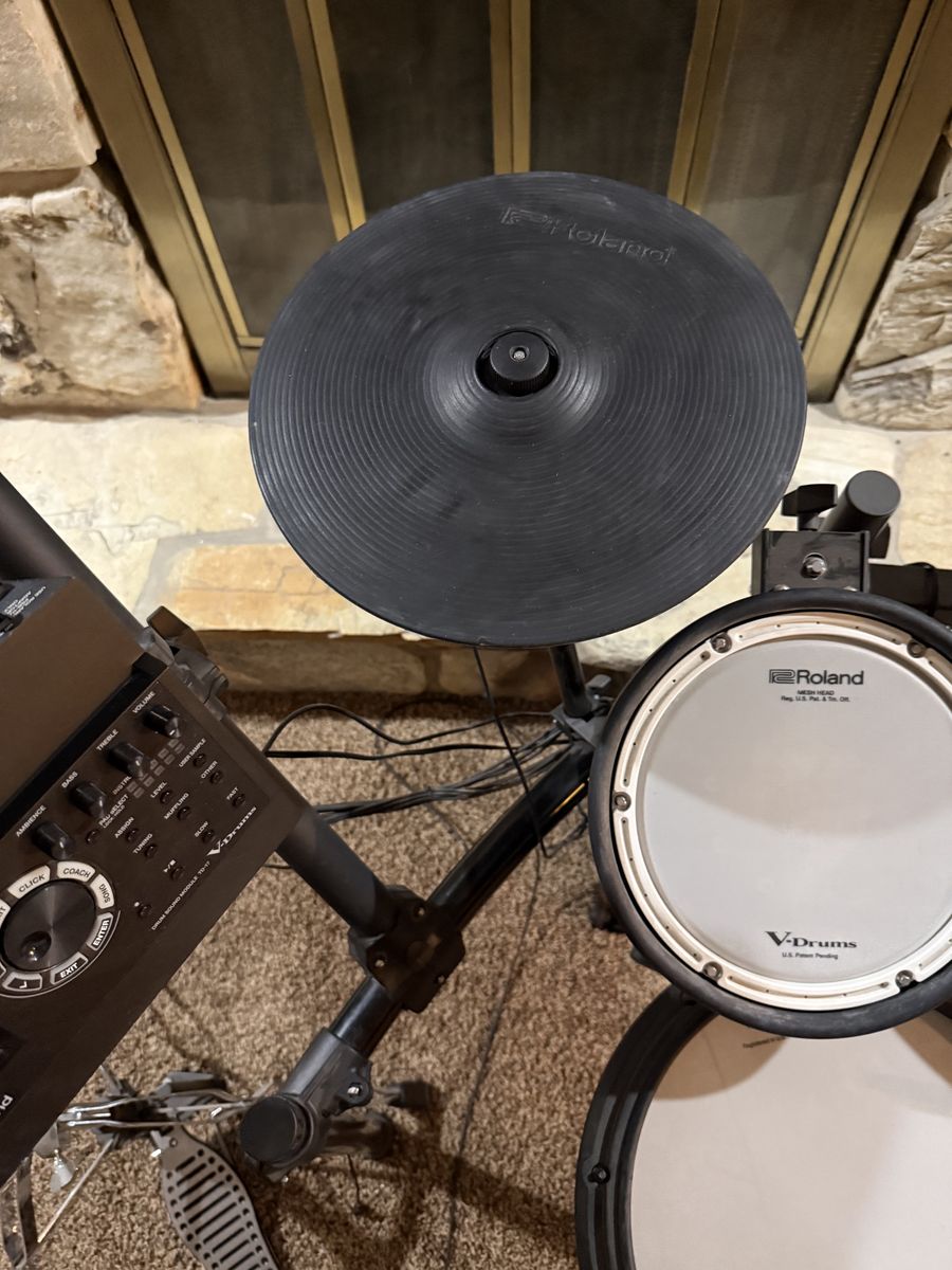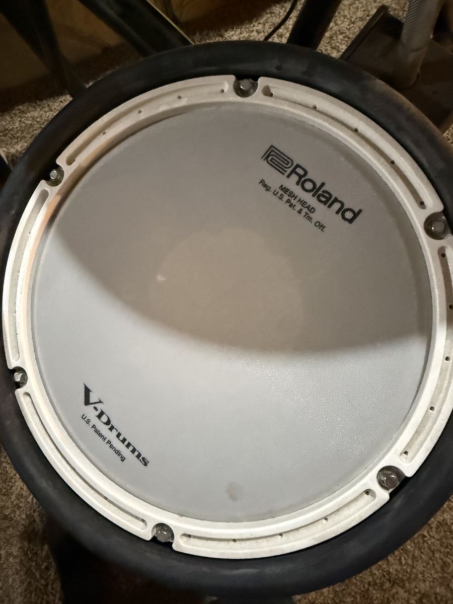 The mesh heads have no wear on them and everything works as it should. It’s a great electric drum set. The only thing that isn’t going with it is the kick. It’s a dw3000 that I’ll throw in for an extra $150. But if you already have some I’ll keep them for my acoustic set. And I’ve added some parts from another electric drum set to give some space for the sound module so it’s not so close and the snare so it’s attached but if you want the original snare stand you can have that as well.