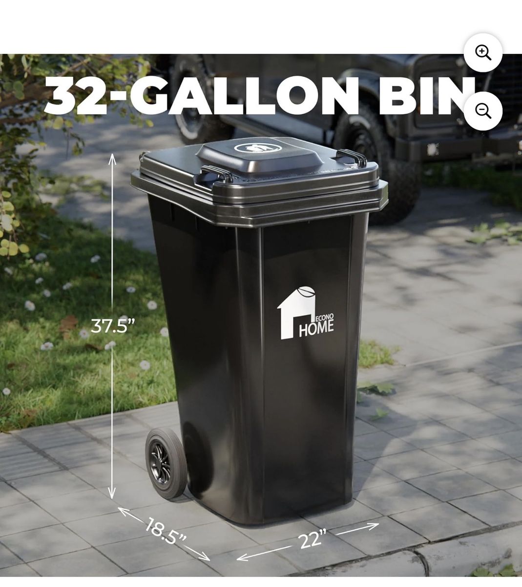 ApplePayNew in box EconoHome Outdoor Garbage Can with Lid - 32 Gallon Trash Can for Backyard, Deck, Garage - Dual Wheels, Extra Heavy-Duty, Durable Handle - Versatile Home & Commercial Storage Container\