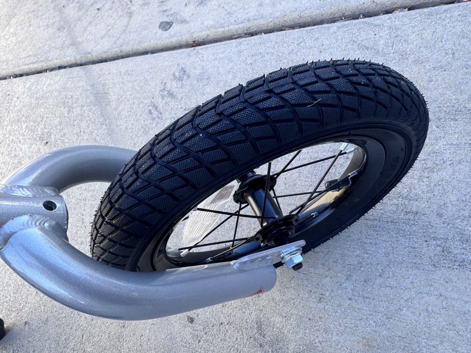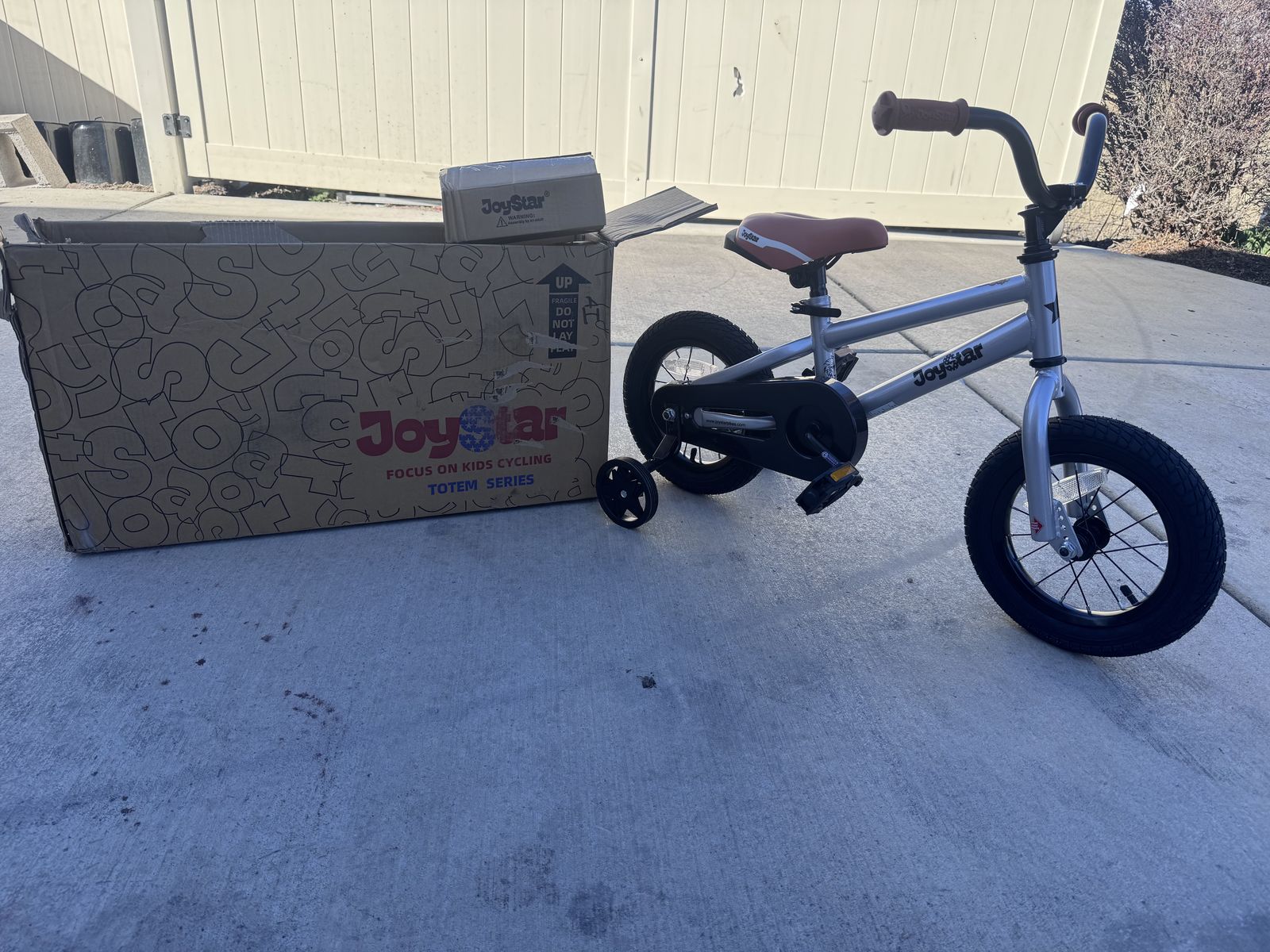 ApplePayNew out of the box and assembled, JOYSTAR BMX Kids Bike - Silver 12 inch Wheel. Was gonna keep for my son but it’s a bit too big for him and he didn’t ready like it.