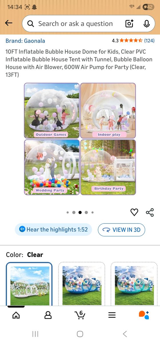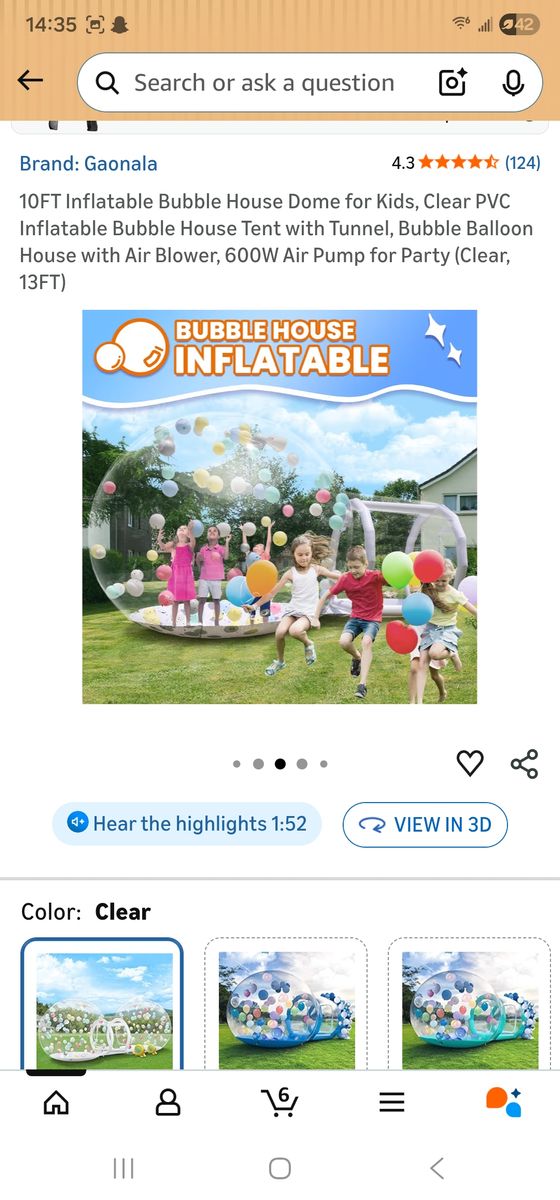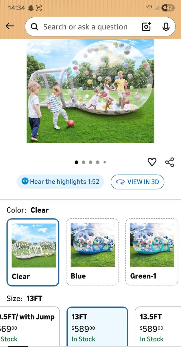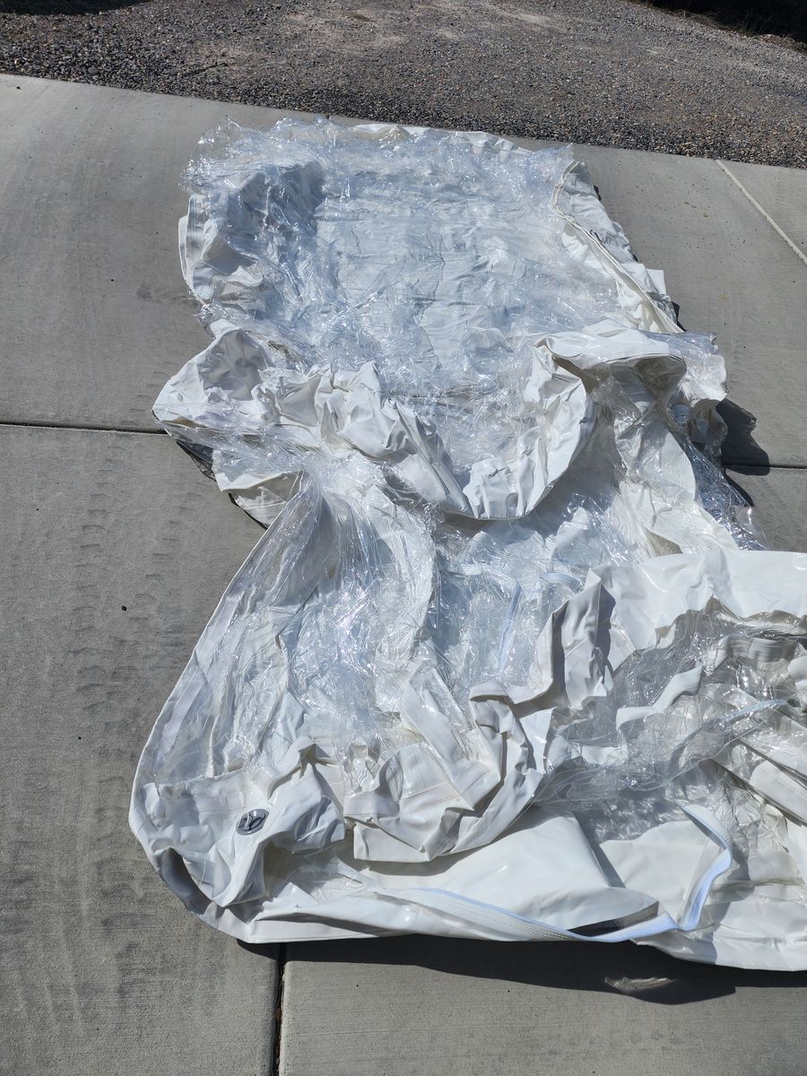 PayPalNew inflatable dome (similiar to a bounce house). Very heavy duty uses a constant blower like a bounce house (not included $62 on amazon) This has many uses for kids and adults. 13ft long with 7'6" inside height . Over $500 on amazon