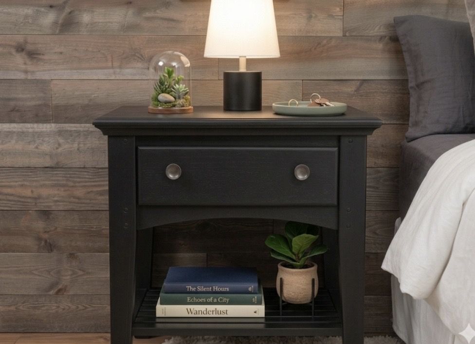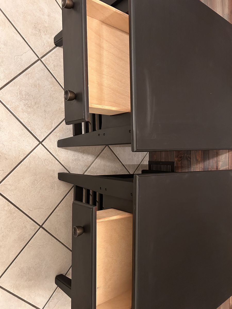 Beautiful matching set of solid black nightstands with smooth-gliding drawers. Sturdy, heavy, and built to last.