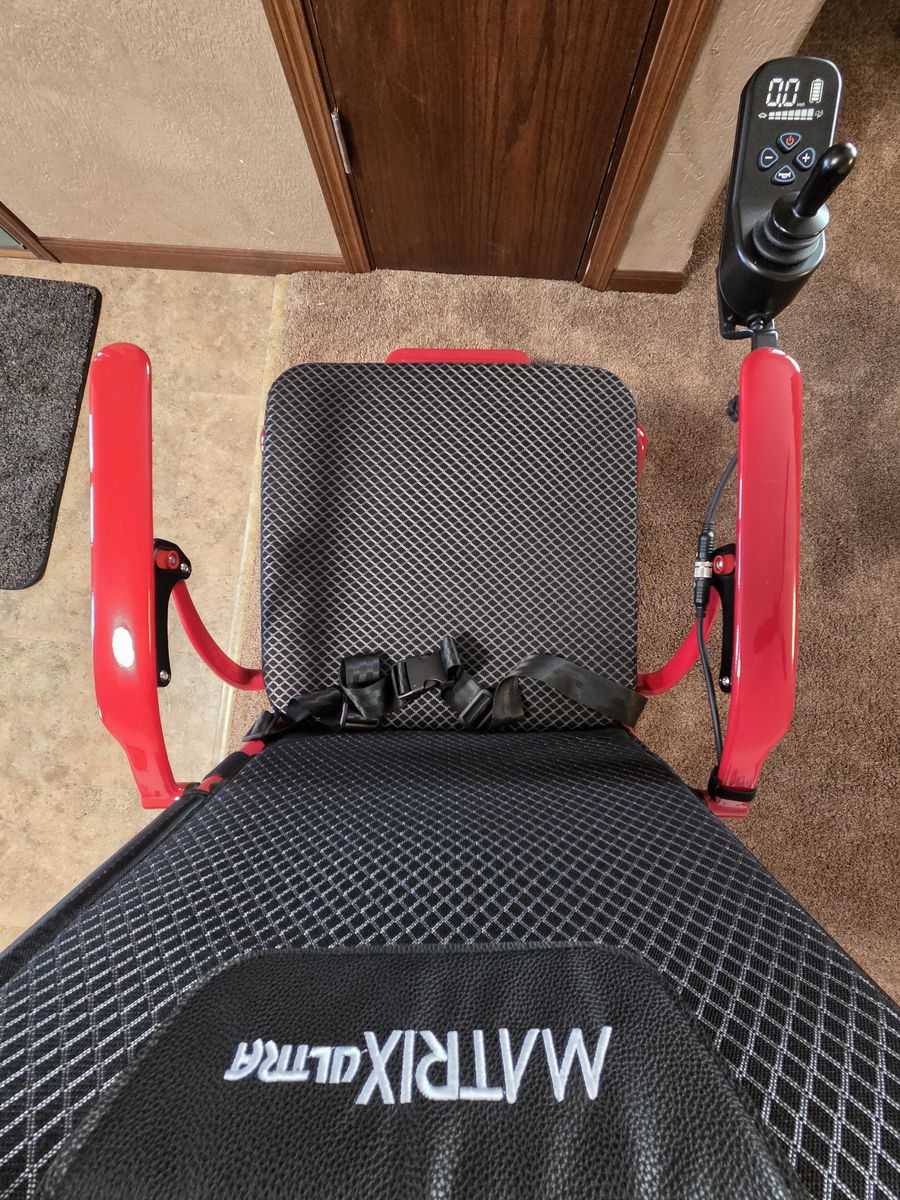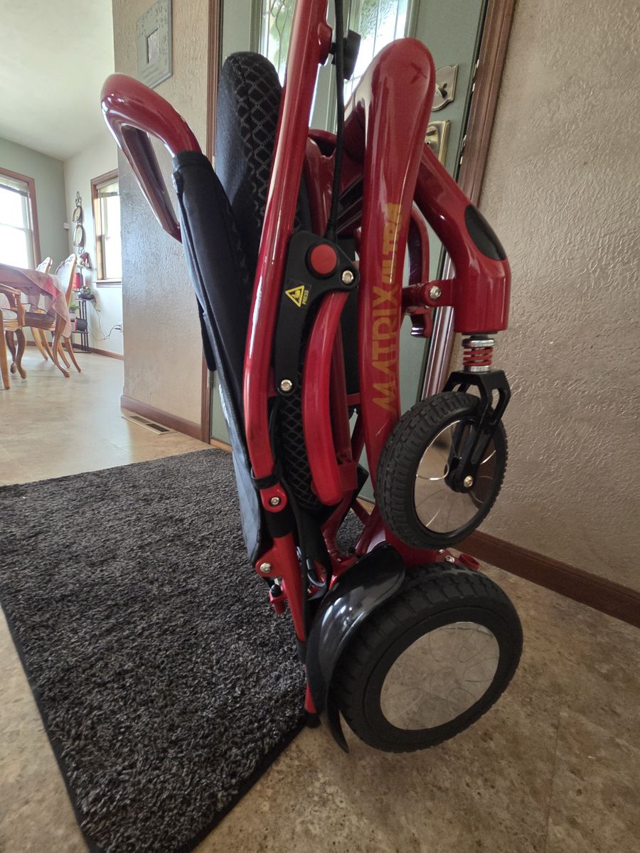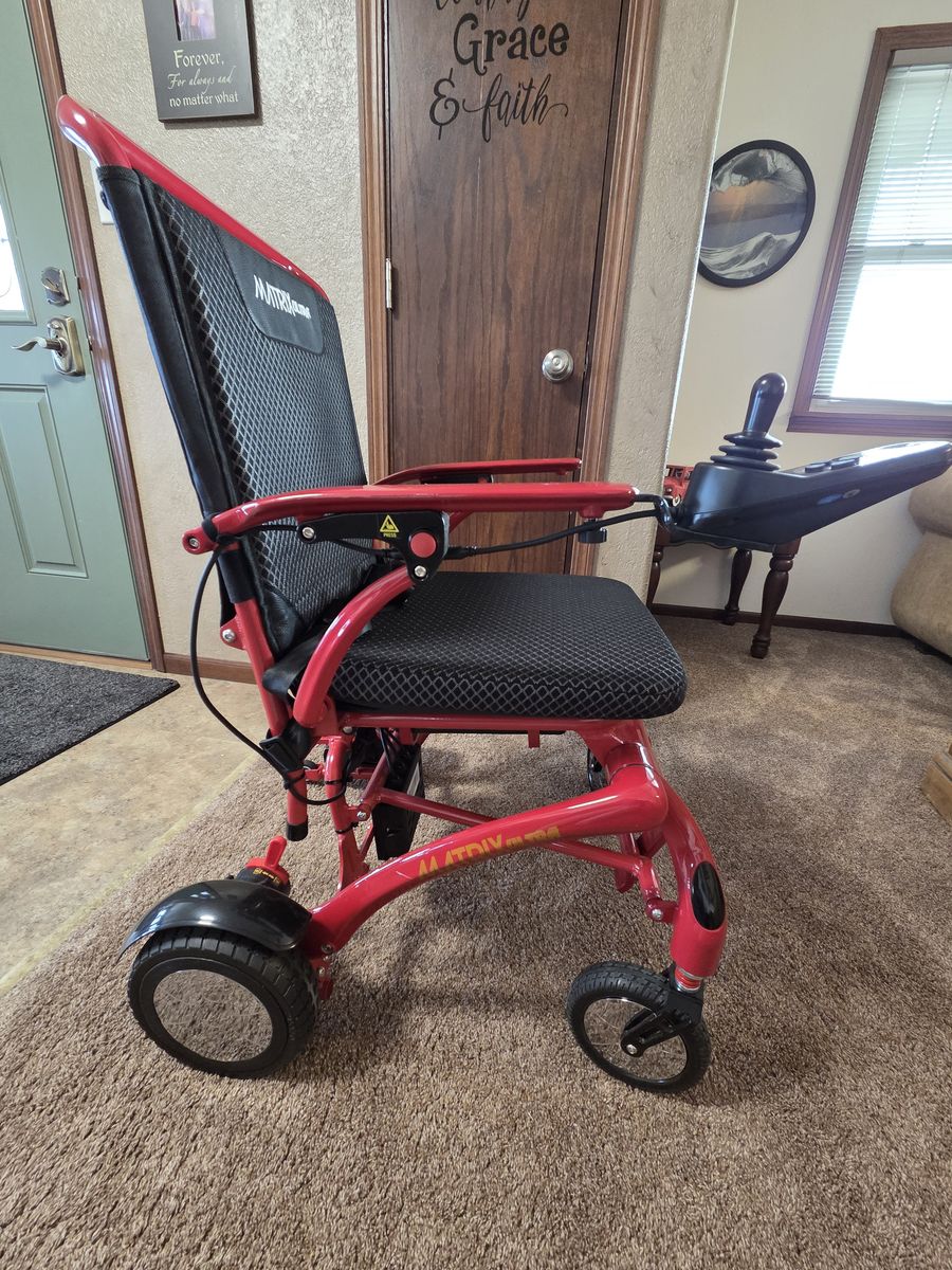 This is a fantastic well built and designed wheelchair. Easy to operate, lightweight enough to pick up to put in a car trunk. Durable and will keep working for years. My daughter used this for 1 semester of college. My mom has the same wheelchair and its held up to heavy use with no issues. Mom tried similar less expensive chairs after giving ours a try and after several returns, bought the same chair. It's the best in its class on the market. It's lightweight, folds easily like a stroller and operates easily indoors and out. Comes with all the original accessories. Looks and runs like new other than a few white scuff marks on the frame. Search Matrix Ultra Wheelchair for more details on-line.