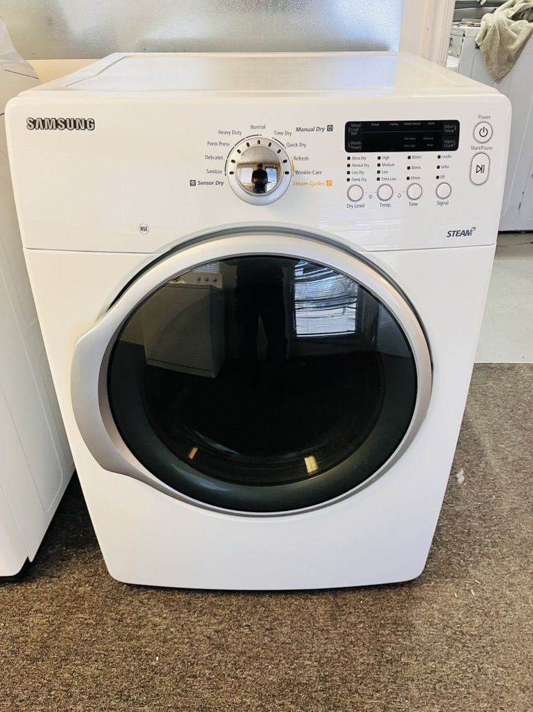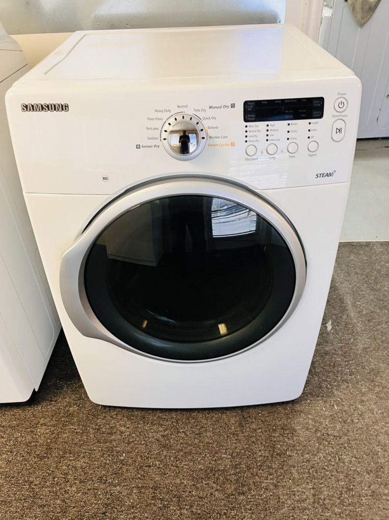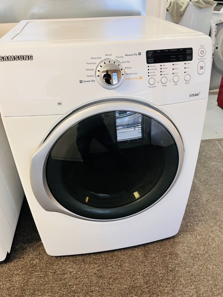 Very nice Samsung electric dryer In excellent condition and very clean inside and out, it has steam refresh option to remove wrinkles and freshen up your load saving you the hassle of ironing it’s 27” wide and can be stacked on most front load washing machines. Only $180 I can deliver and install for a little extra. Call 8015403075