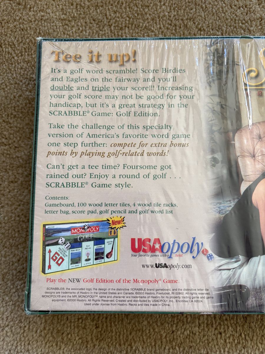 NEW (sealed in plastic) Scrabble Crossword Game: Golf Edition. Ages 8+, 2-4 players. USAopoly, Hasbro, 2000. New, unopened condition. Text only. Cash or Venmo. Discount on multiple items.