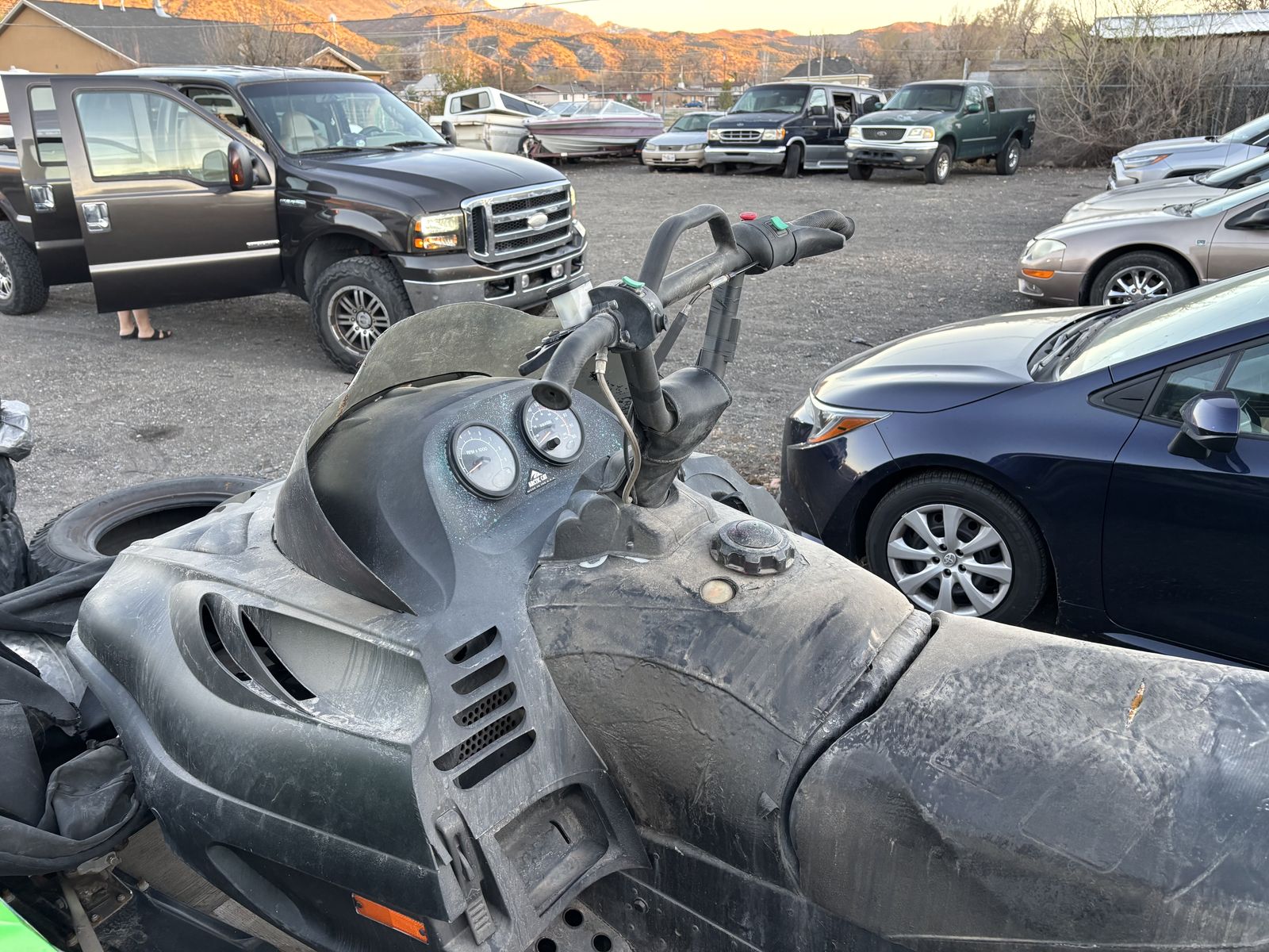 Has an after market exhaust, runs good, track and ice scratchers in good shape, seat could use a little love.