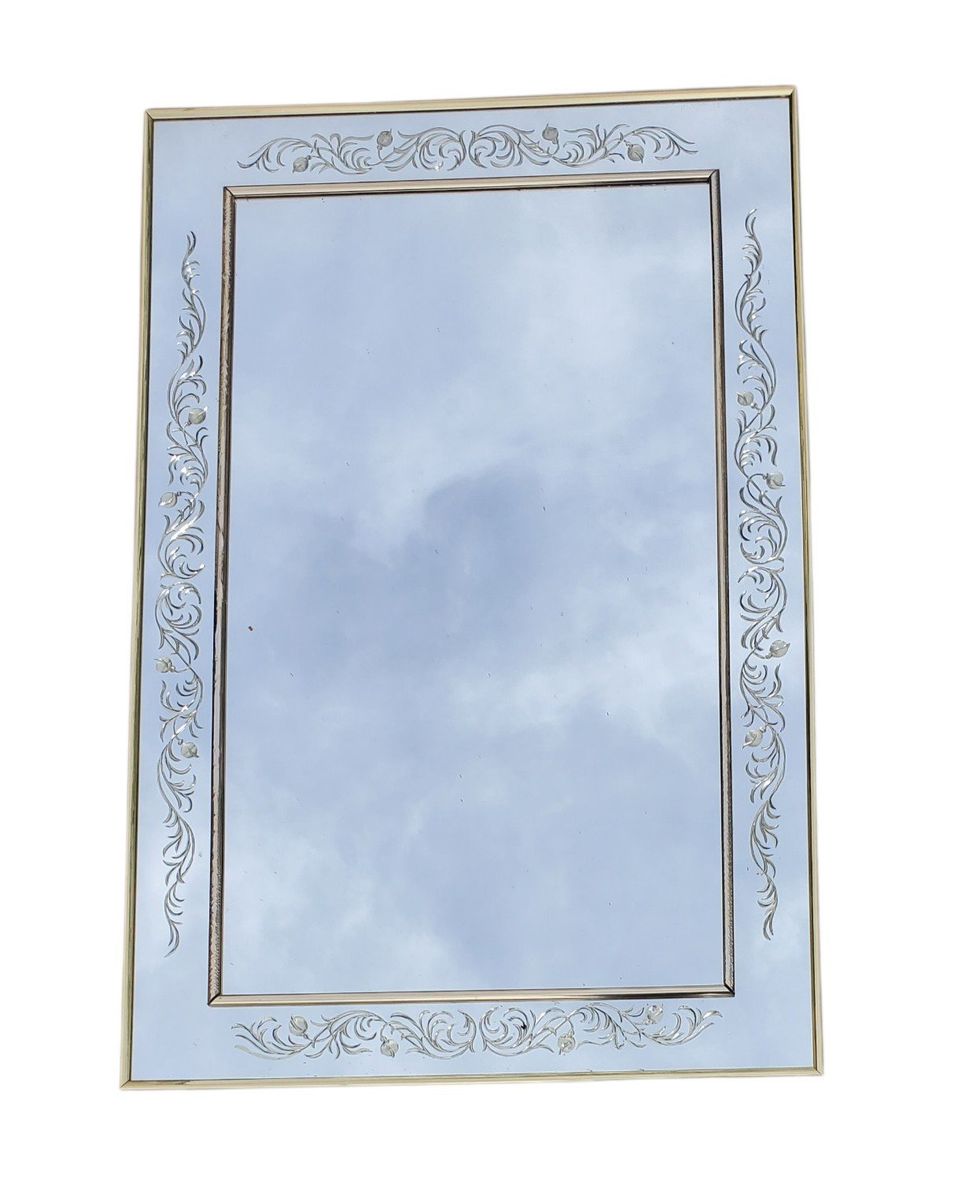 etched floral detailing | brass - gold metal frame | Hollywood Regency | entry way | bathroom | living room | 1979 | Reliable Mfg Co