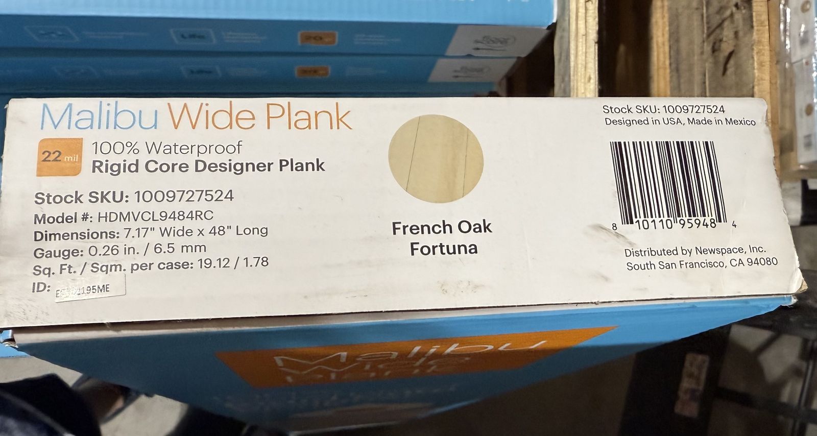 19.12 sq. ft. per box; 8 planks per box; box weight is 46.3 lbs.