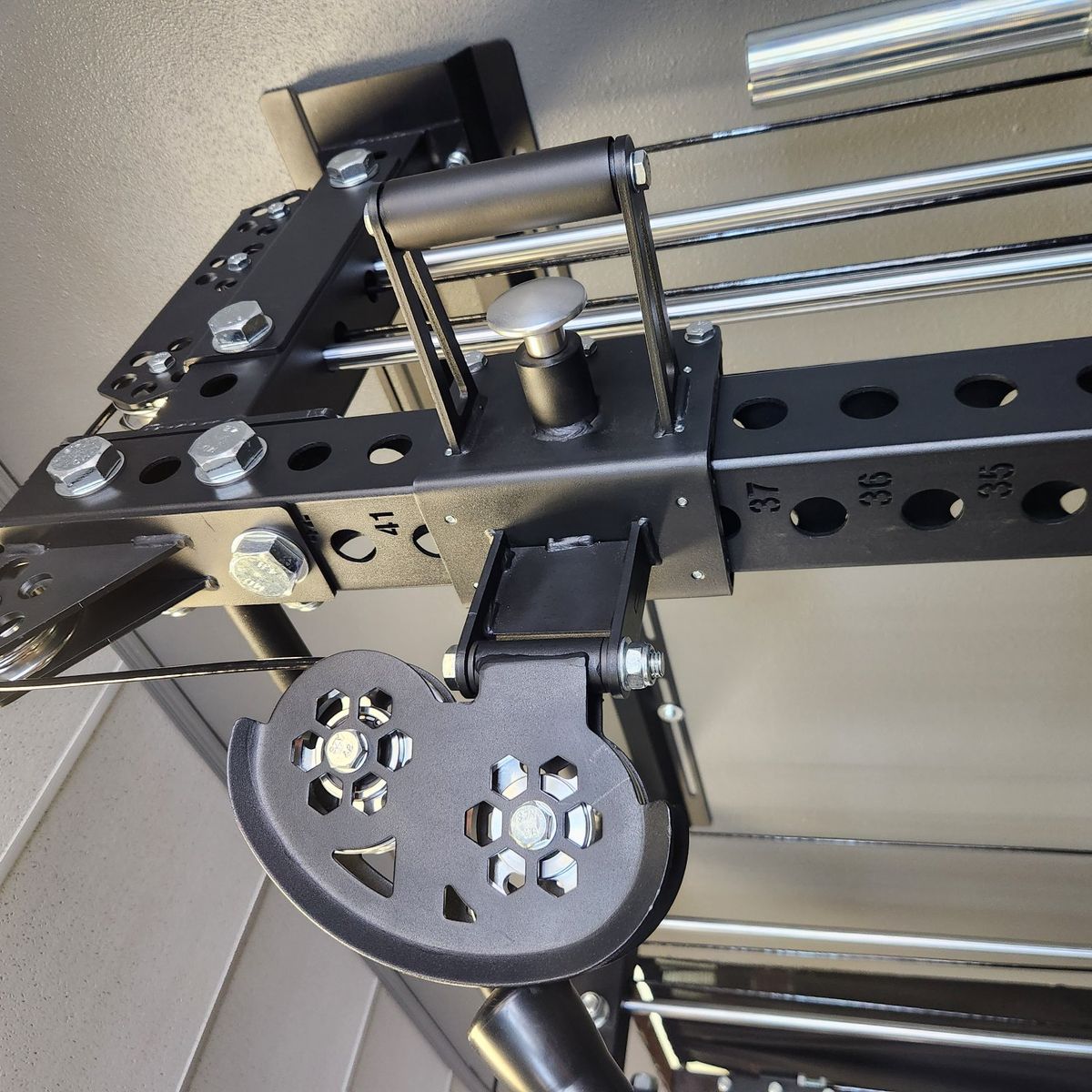 Olympus Functional Trainer Features • Dual 150 lb weight stacks • Smooth aluminum pulley cable system • Solid steel guide rods • 6 mm cables — 50% thicker than most competitors • Compact wall-mounted design