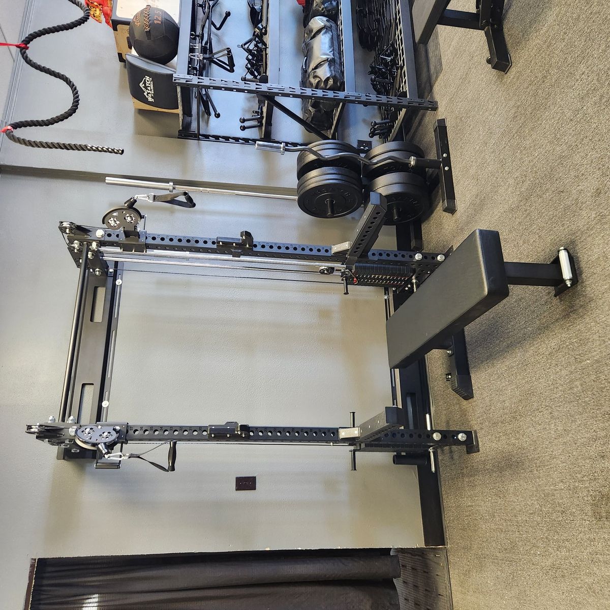 This setup gives you a full rack, cable machine, and bench system in one compact footprint — perfect for home gyms, studios, and serious lifters who want commercial equipment without commercial space requirements.