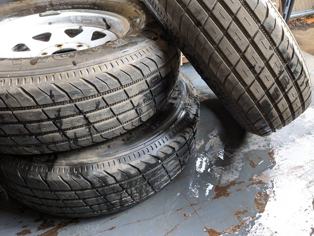 Set of four Trailers Tires mounted on wheels, ready to go. 225-75-15 good condition. Asking $200 for all four. TEXT-801-999-8332.