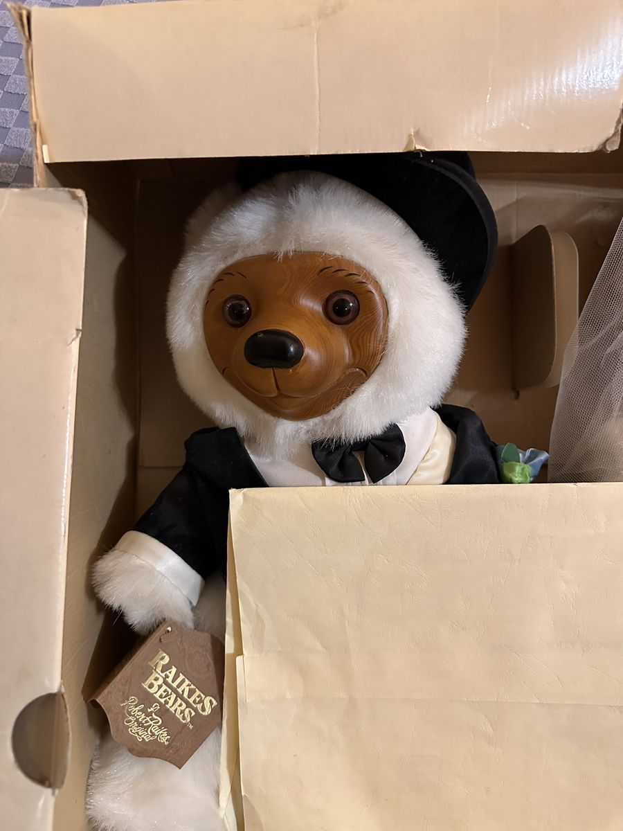 VenmoDon’t miss this rare chance to own the charming Raikes plush bear couple, Allison and Gregory, beautifully dressed in elegant wedding attire. These collectible bears make a stunning addition to any Raikes or plush bear collection and are also a thoughtful, one-of-a-kind gift for a bride and groom.