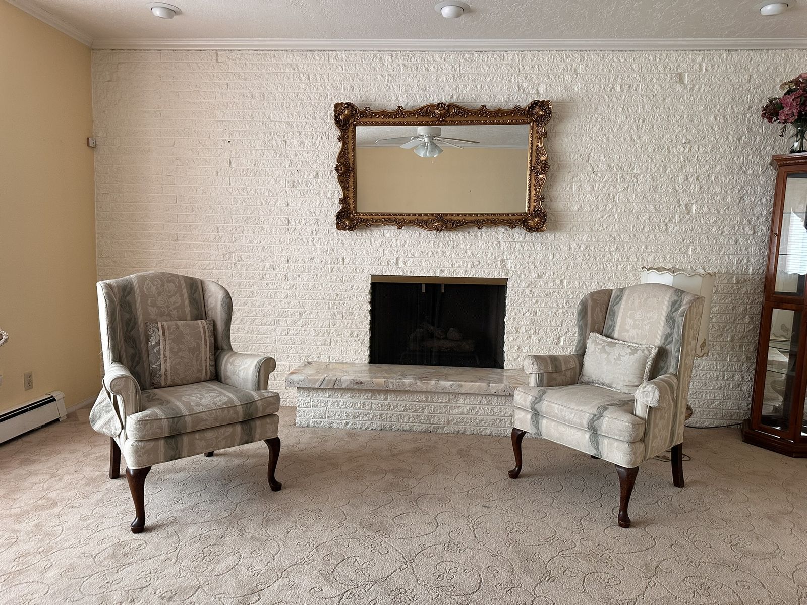 Both chairs are in great condition and very comfortable. The neutral upholstery makes them easy to pair with a variety of décor styles.