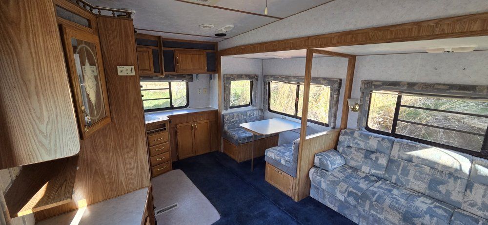 1999 Komfort 24fs 4 season 5th wheel, 27ft long, 2 solar panels, no leaks or water damage. tires replaced last year, one trip on them. new faucets, all lights inside and out are led, has a hitch on the back but is not wired. resealed the roof and windows last year as preventive maintenance. batteries are only a couple years old, water pump was replaced a couple years ago. wheel bearings inspected and replaced last year. 2 30lb propane tanks. The furnace and A/C works great, also has a catalytic heater that uses no electricity to run. fridge and stove/oven work great. I have a rack that holds bikes and kayaks that is available if wanted.